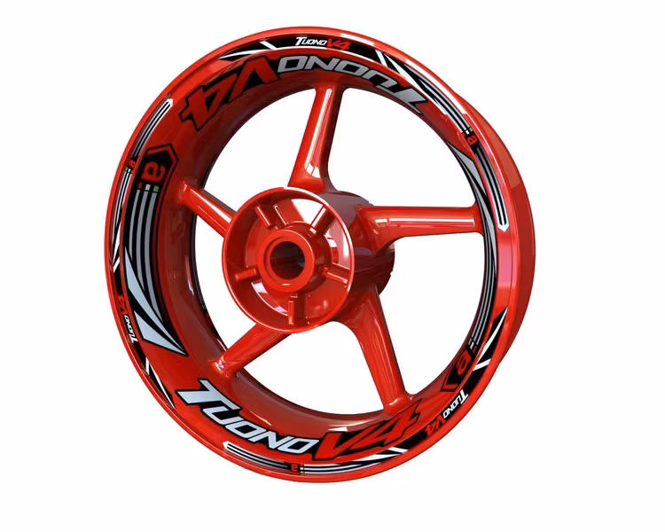 Aprilia Tuono V4 17" Wheel stickers set. 100% Complete including front & rear wheel, both sides of each wheel.