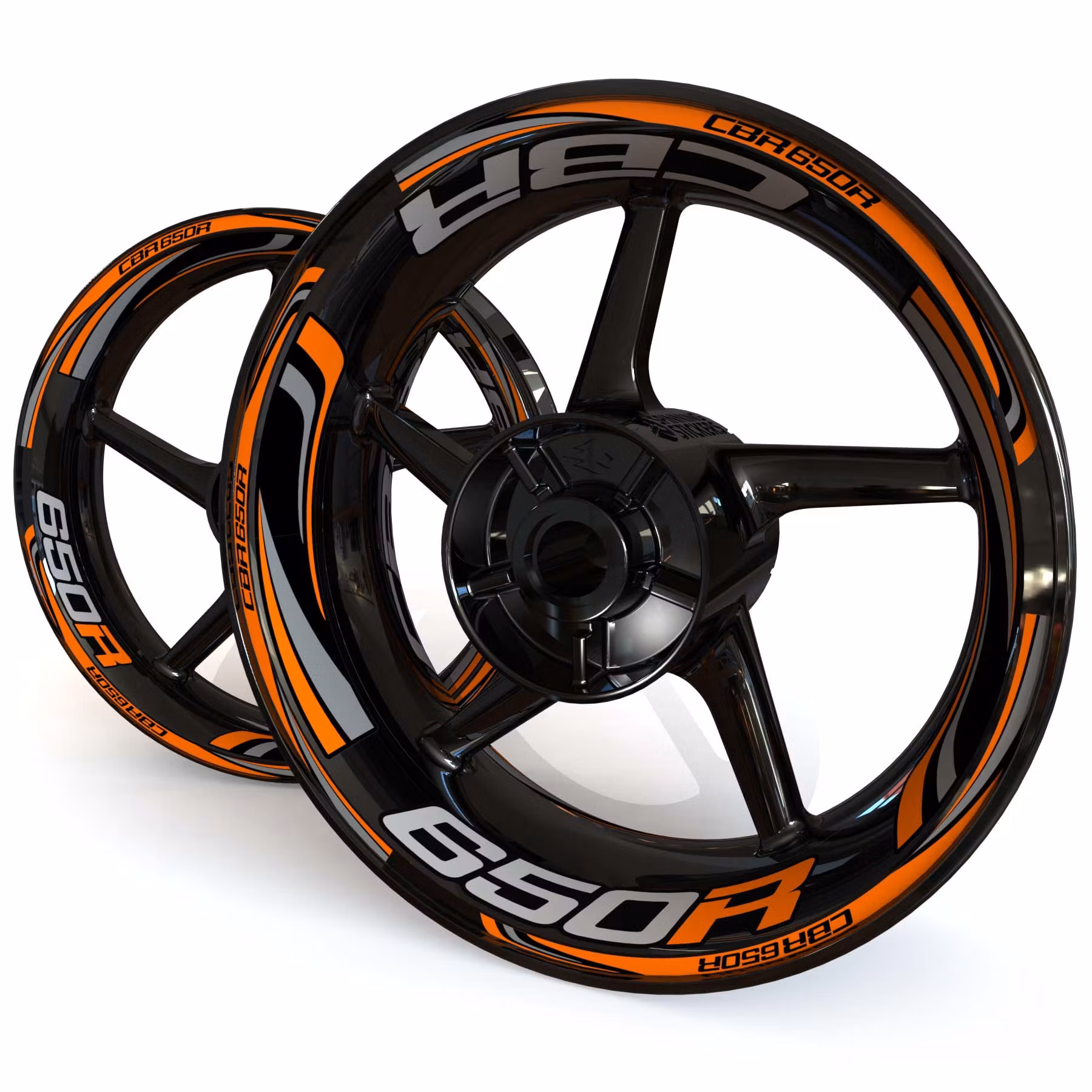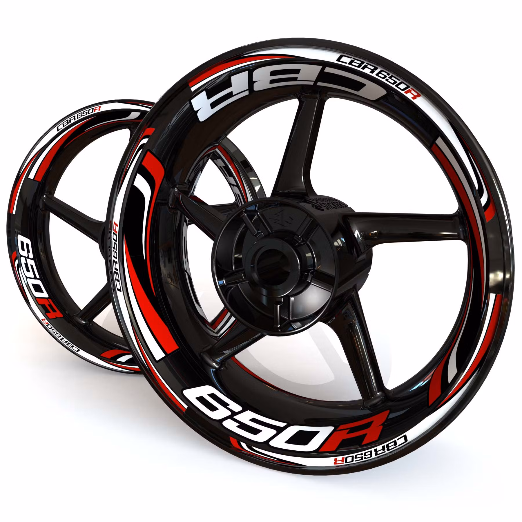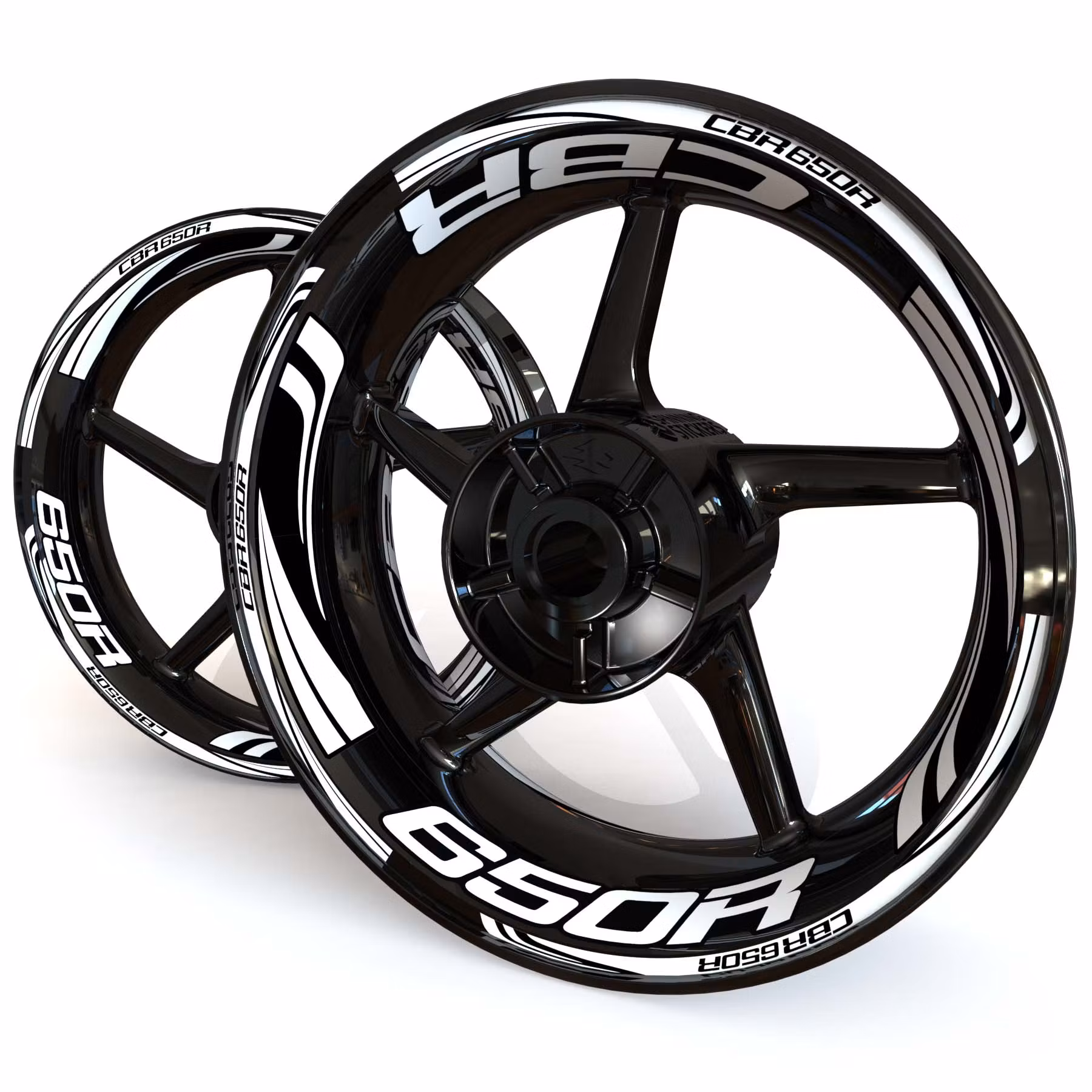Honda CBR650R 17" Radaufkleber-Set. 100% komplett inklusive Vorder- und Hinterrad, beide Seiten jedes Rades.