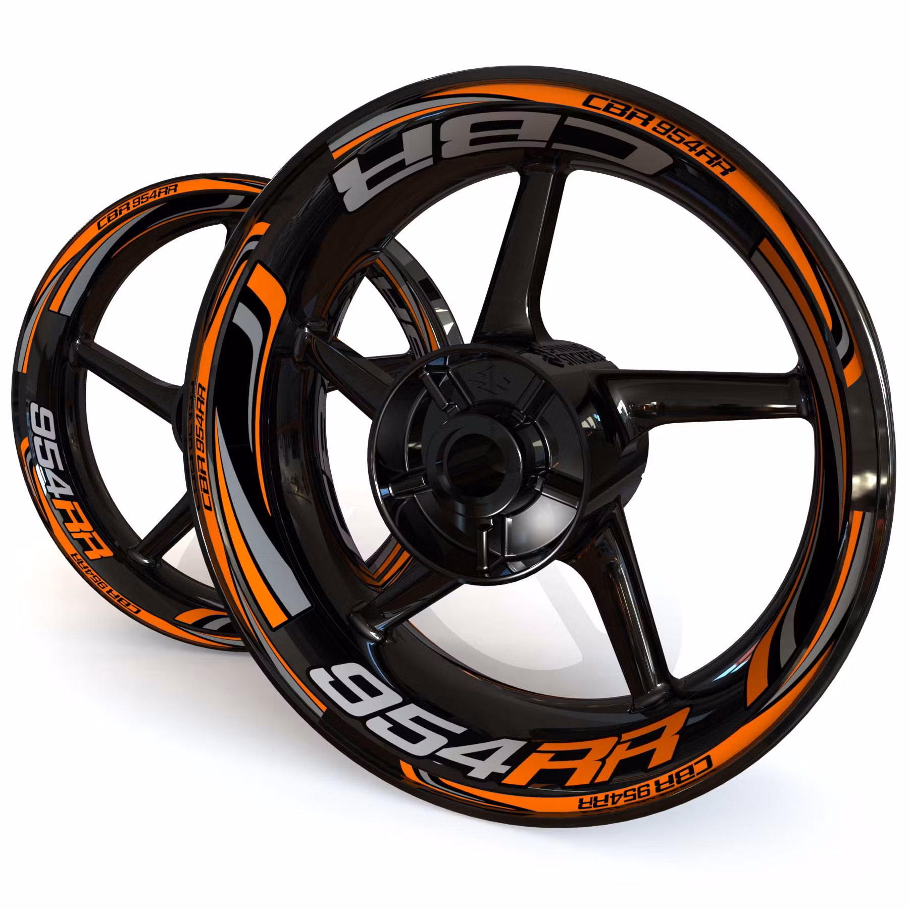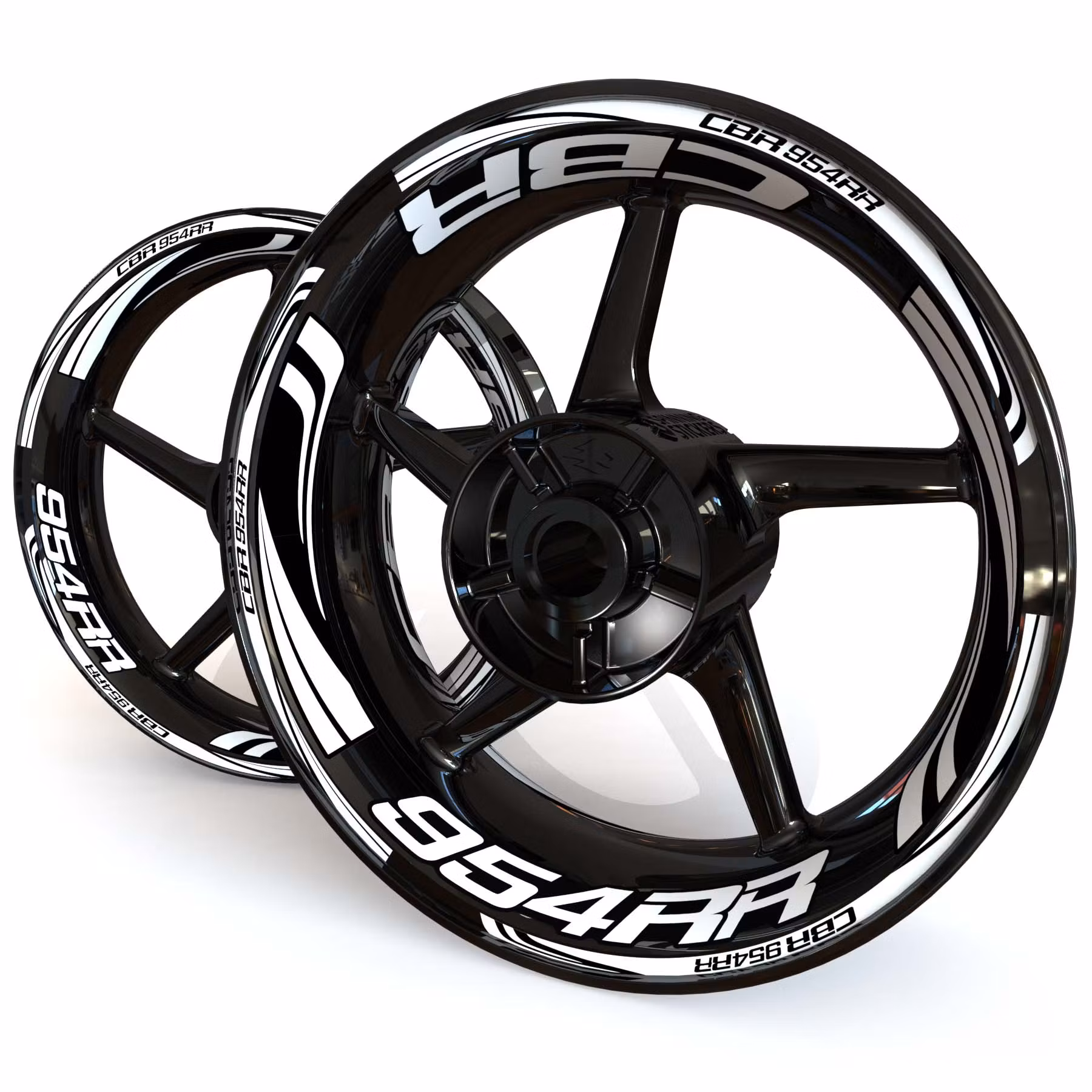 Honda CBR954RR 17" Radaufkleber-Set. 100% komplett inklusive Vorder- und Hinterrad, beide Seiten jedes Rades.