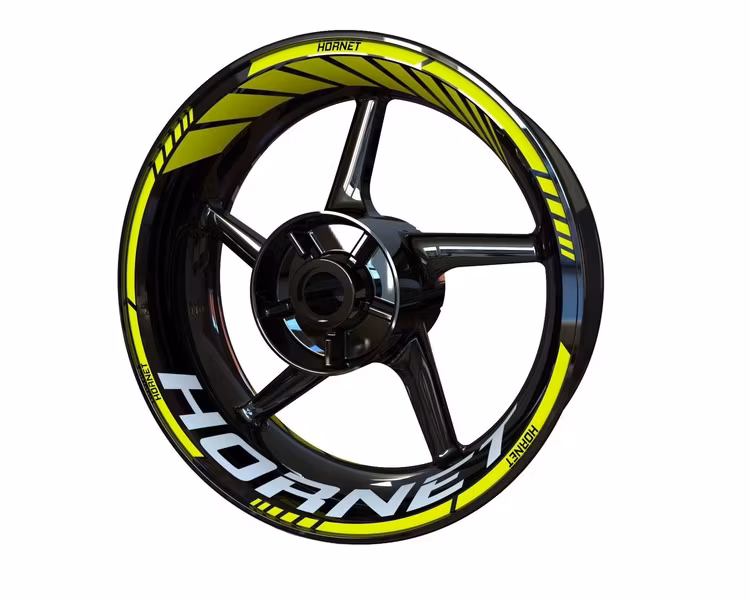 Mit einem einzigartigen Design, leuchtenden Farben und hochwertigem Material sind diese Honda Hornet/CB600F Felgenaufkleber die perfekte Ergänzung für Ihr Motorrad. Die 17" Felgenaufkleber sind mit einem starken Schutzlaminat laminiert, das für zusätzliche Haltbarkeit und Langlebigkeit sorgt. Dank des starken, aber langsam wirkenden Klebstoffs können Sie die Aufkleber mehrmals anpassen, bevor sie vollständig haften.