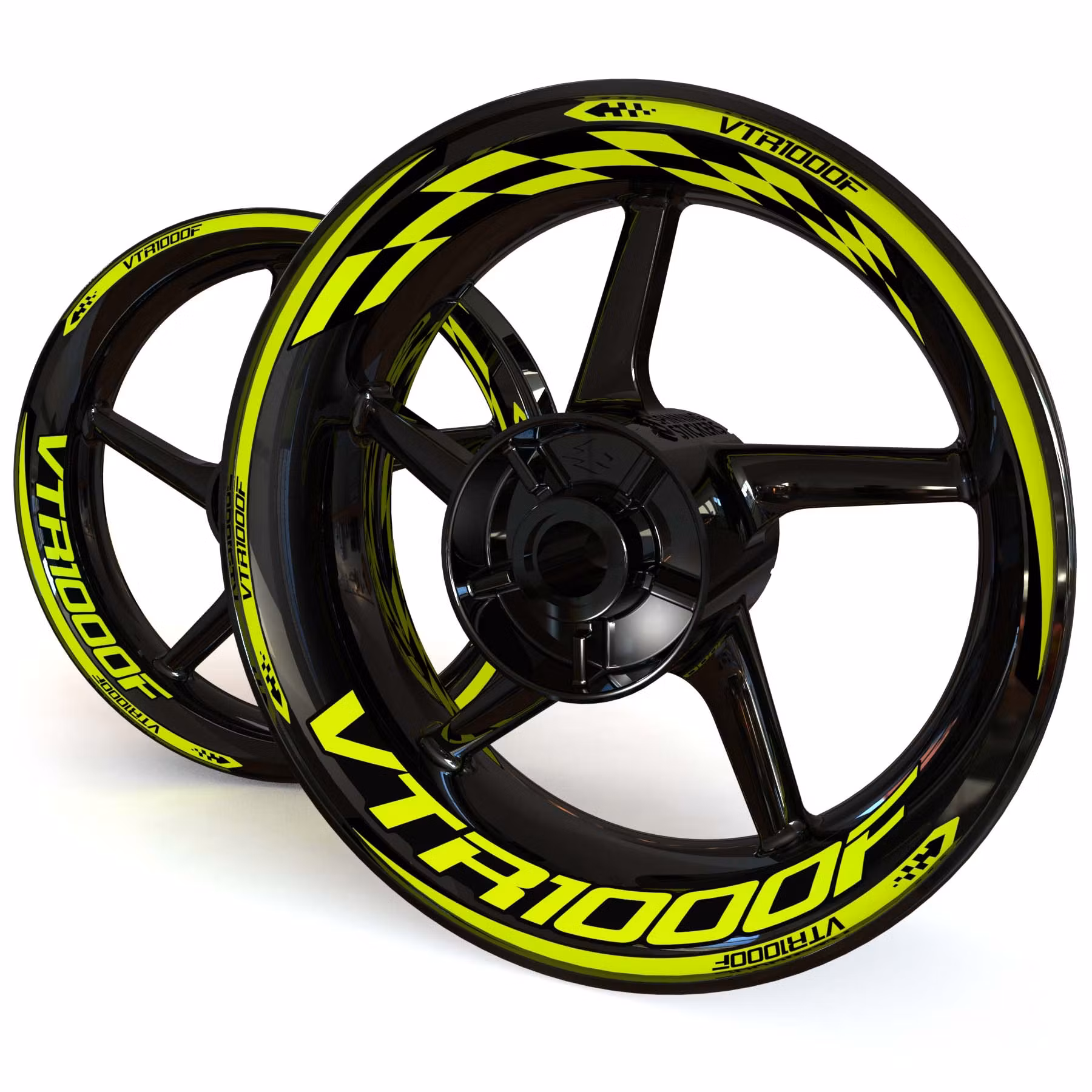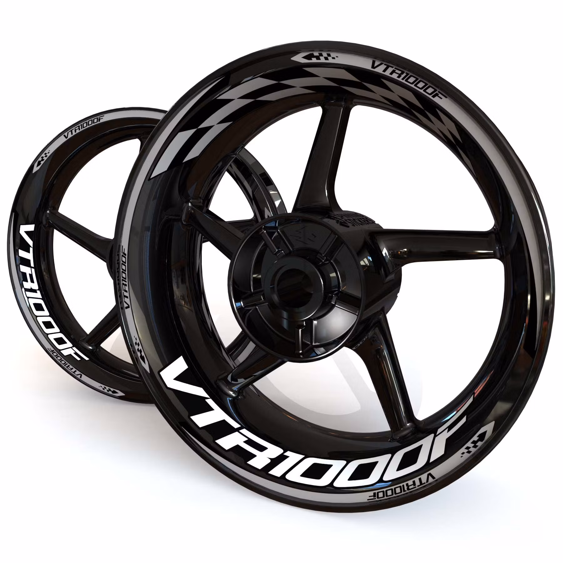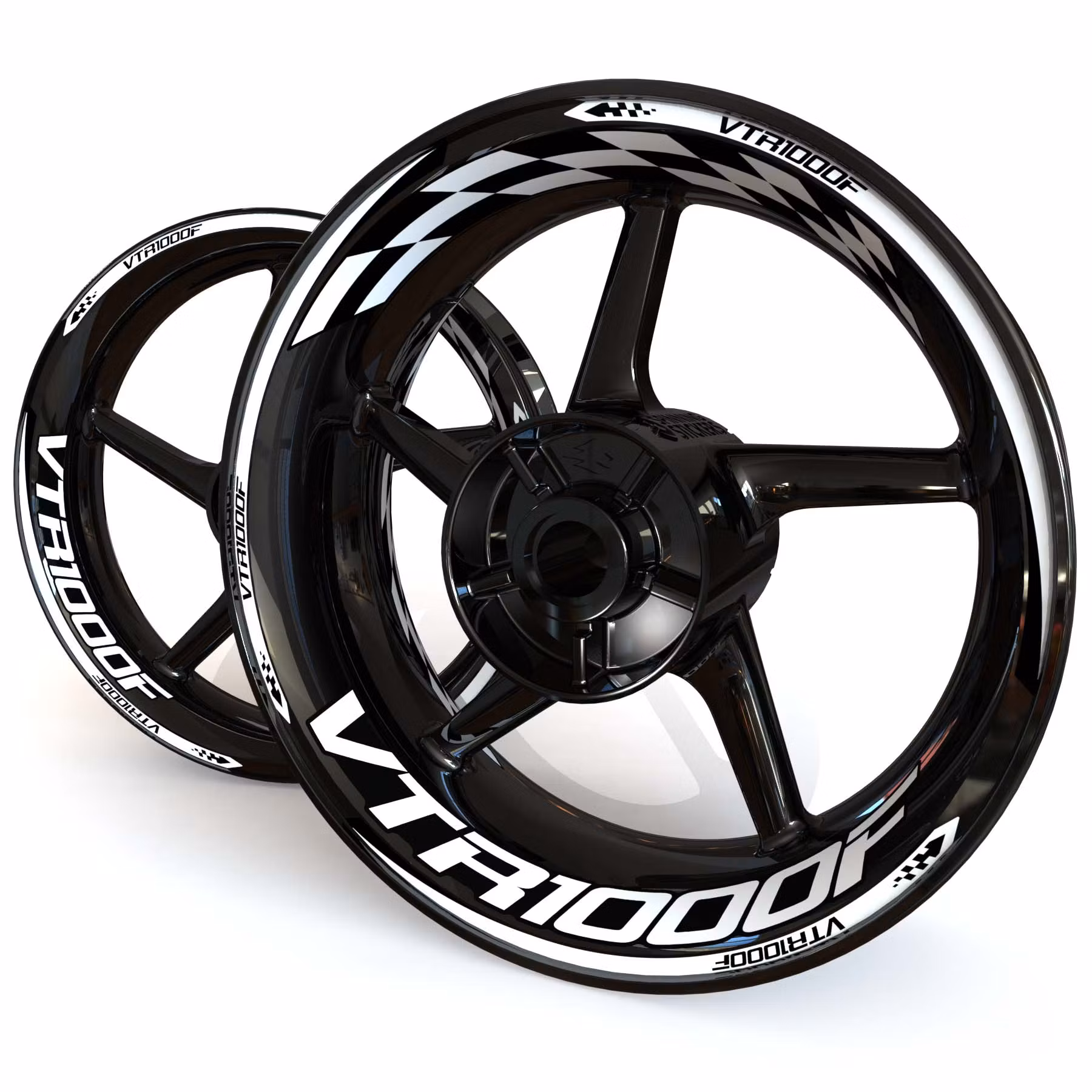 Honda VTR1000F 17" Felgenaufkleber-Set. 100% vollständig einschließlich Vorder- und Hinterrad, beide Seiten jedes Rades.