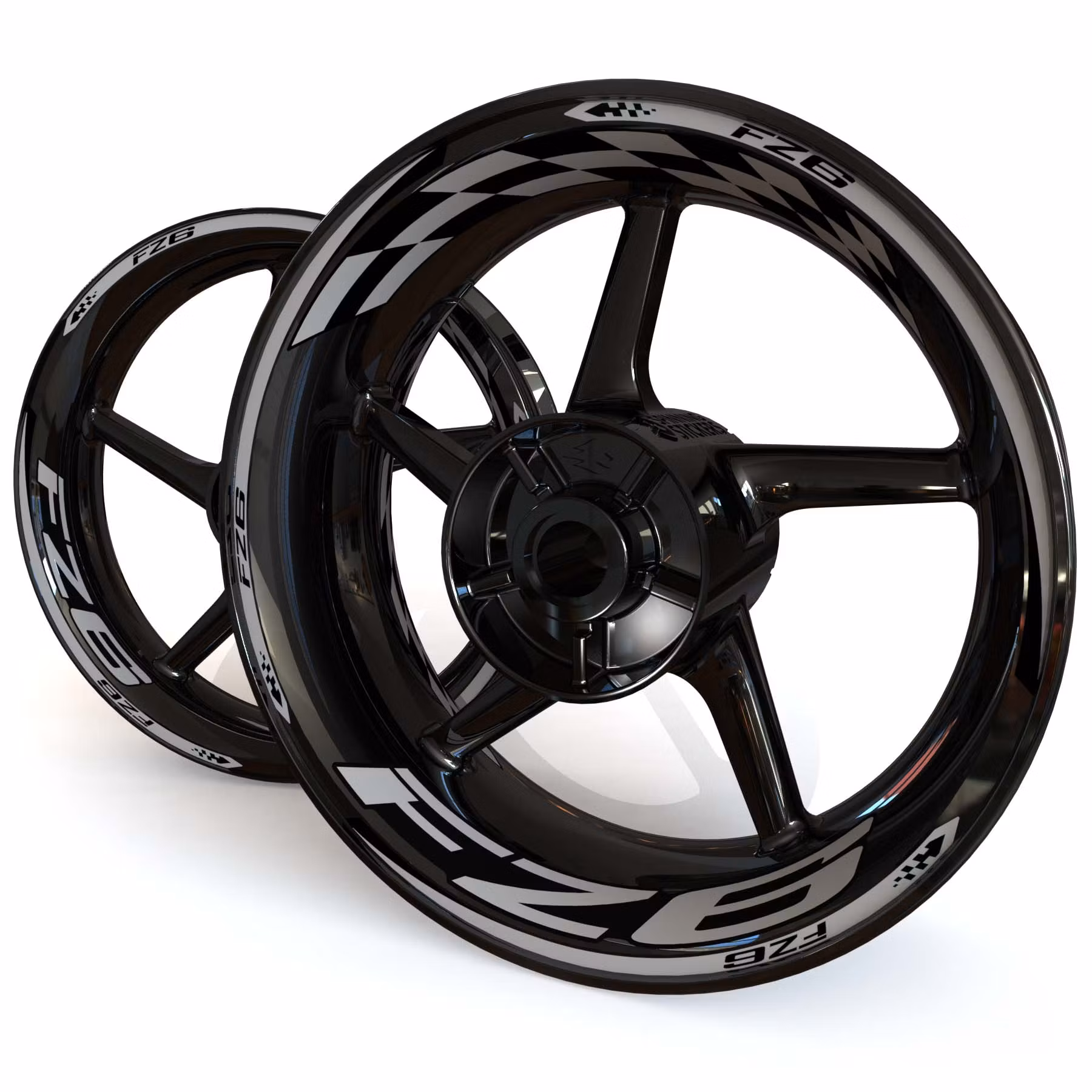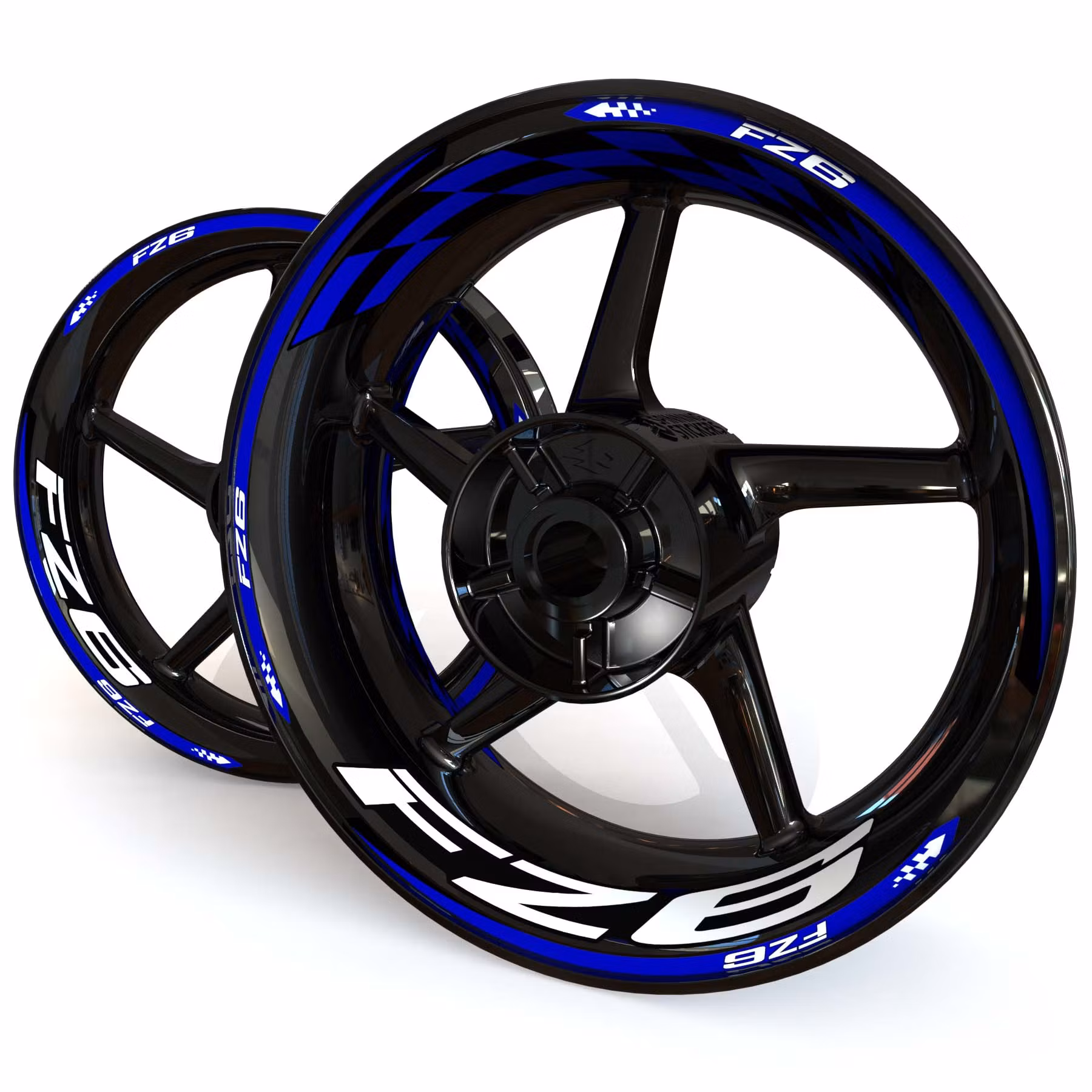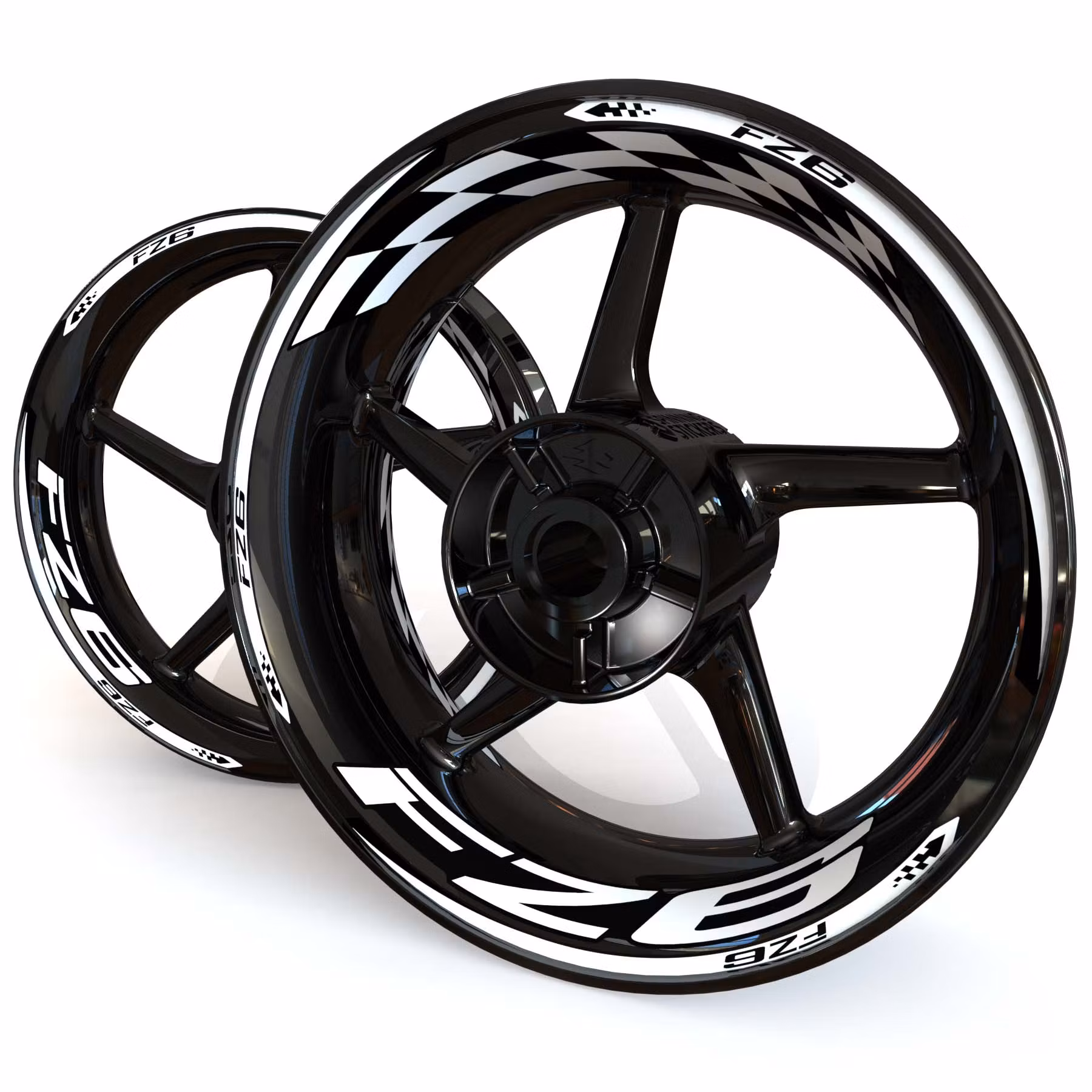 Mit einem einzigartigen Design, leuchtenden Farben und hochwertigem Material sind diese Yamaha FZ6 Felgenaufkleber die perfekte Ergänzung für Ihr Motorrad. Die 17" Felgenaufkleber sind mit einem starken Schutzlaminat laminiert, das für zusätzliche Haltbarkeit und Langlebigkeit sorgt. Dank des starken, aber langsam wirkenden Klebstoffs können Sie die Aufkleber mehrmals anpassen, bevor sie vollständig haften.