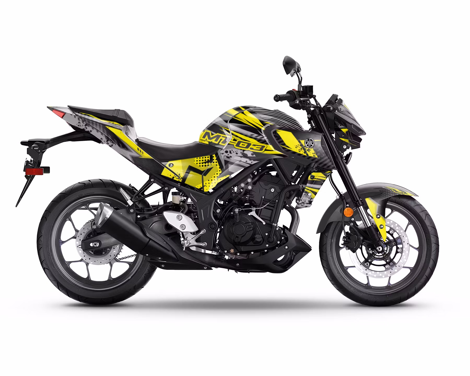 Verwandeln Sie Ihr Yamaha MT-03 mit unserem spektakulären, einzigartigen und auffälligen Aufkleber-Set komplett um. Die Motorradaufkleber sind aus hochwertigem Vinyl gefertigt und dank der zusätzlichen Schutzlaminatschicht haben die Aufkleber eine fantastische Haltbarkeit und Langlebigkeit. Der Klebstoff ist langsam wirkend, so dass Sie die Aufkleber reparieren und neu anpassen können, wenn Sie einen Fehler bei der Anbringung gemacht haben. Die volle Haftkraft ist nach 24 Stunden erreicht. Passt zu Yamaha MT-03.