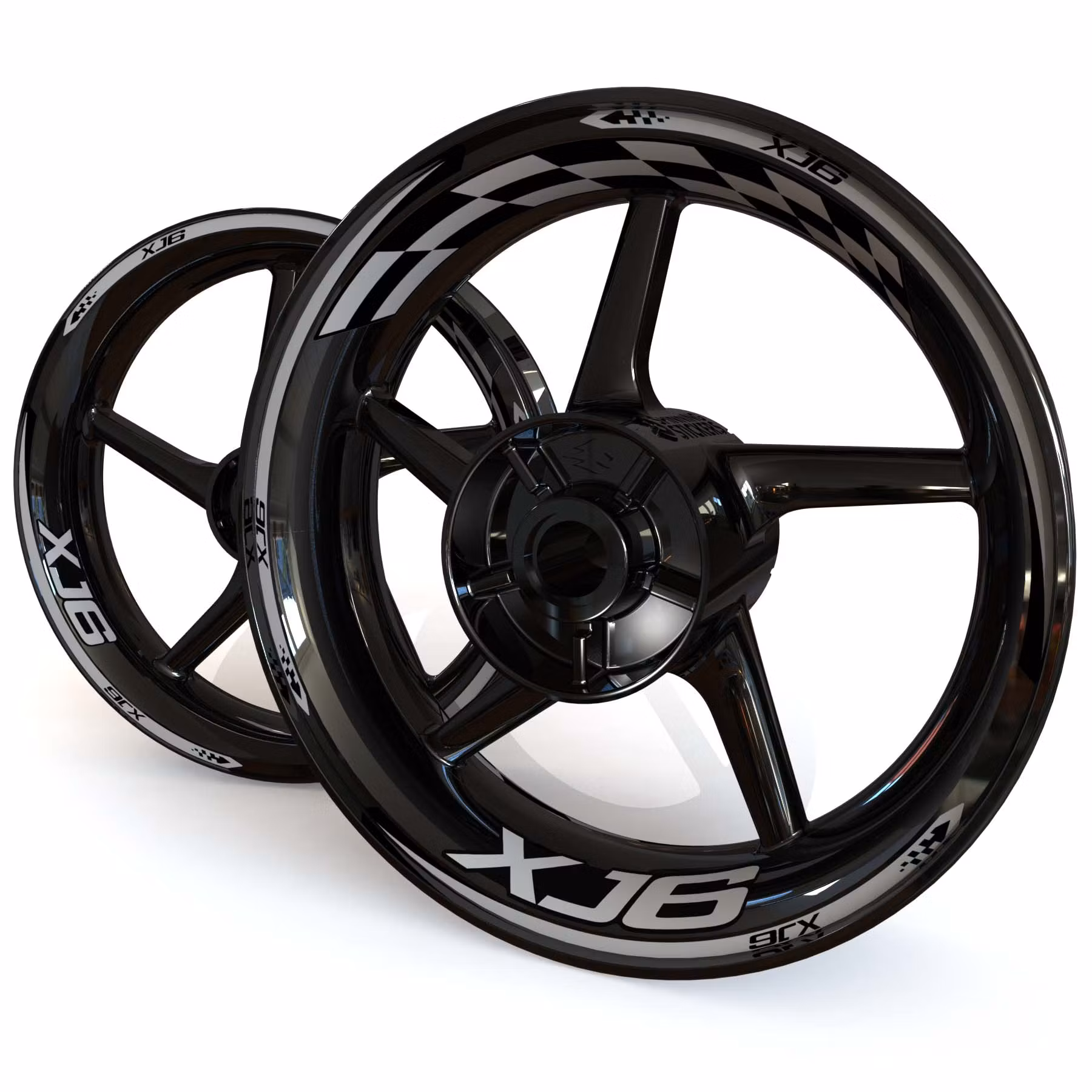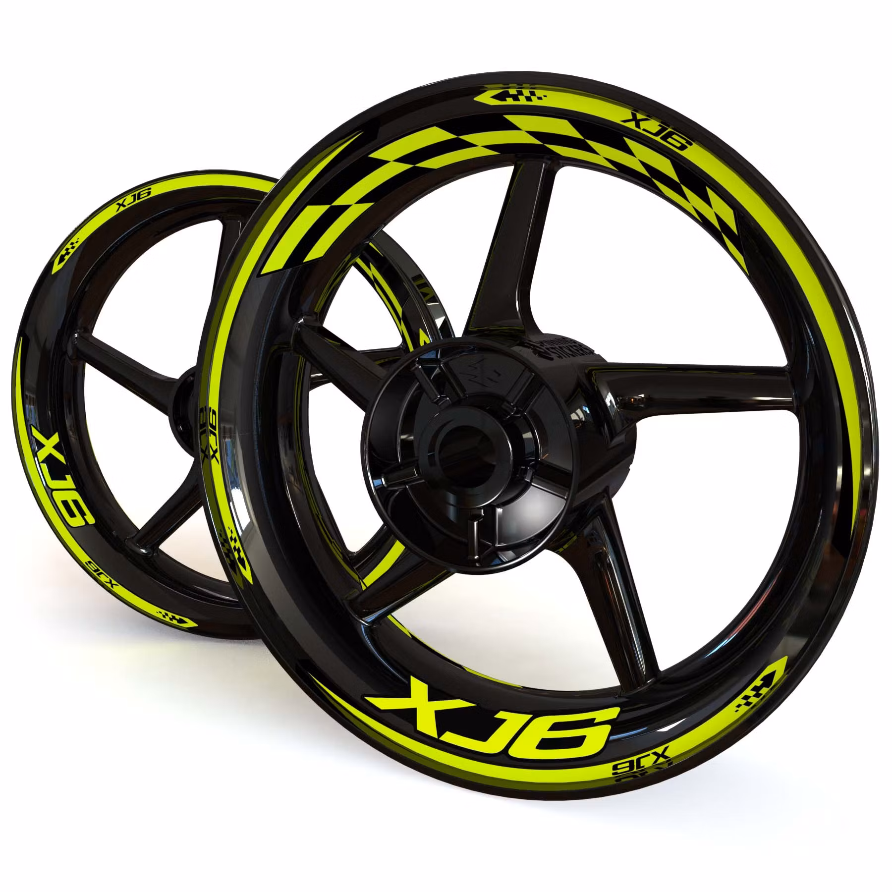 Mit einem einzigartigen Design, leuchtenden Farben und hochwertigem Material sind diese Yamaha XJ6 Felgenaufkleber die perfekte Ergänzung für Ihr Motorrad. Die 17" Felgenaufkleber sind mit einem starken Schutzlaminat laminiert, das für zusätzliche Haltbarkeit und Langlebigkeit sorgt. Dank des starken, aber langsam wirkenden Klebstoffs können Sie die Aufkleber mehrmals anpassen, bevor sie vollständig haften.