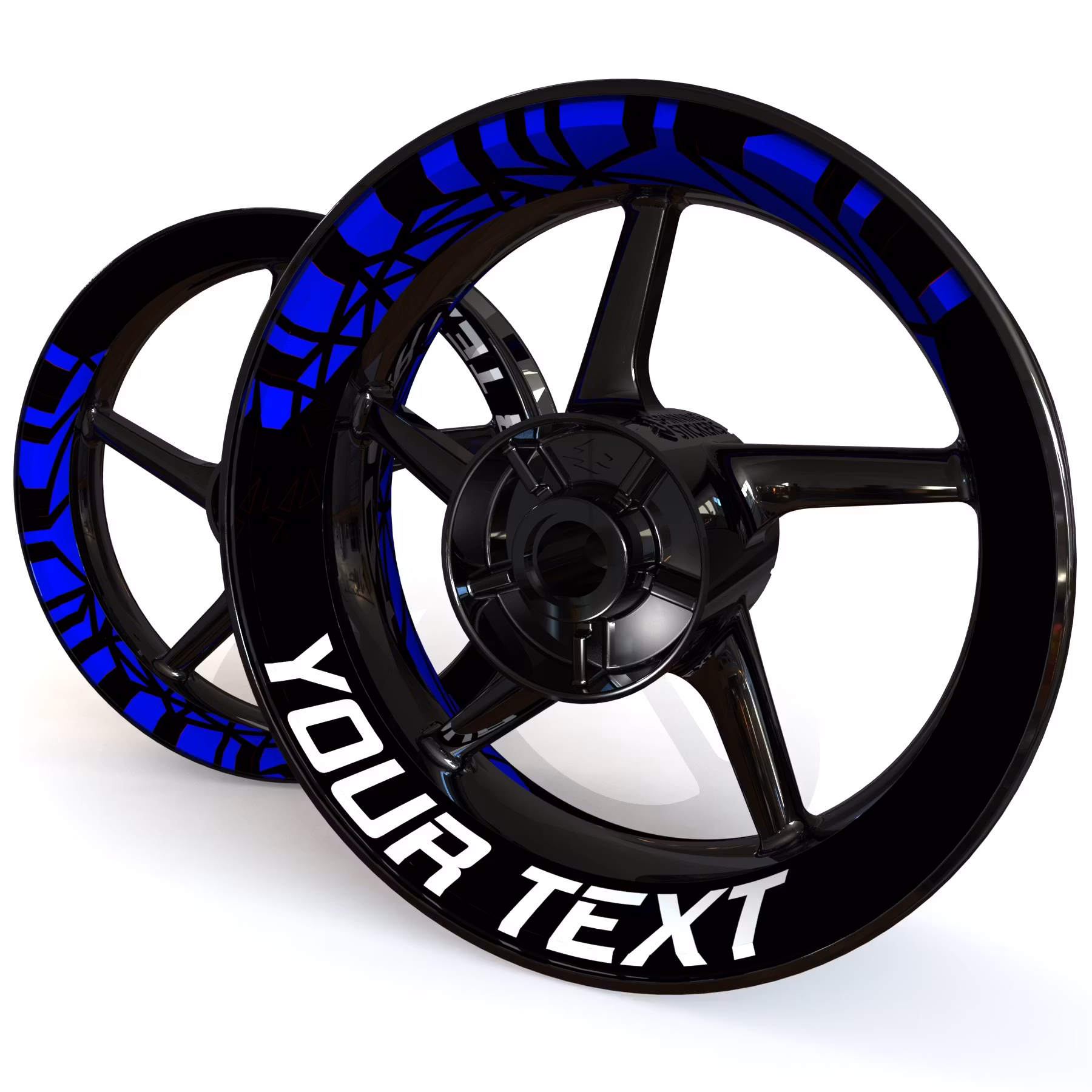 Juego de adhesivos para ruedas "Tu Texto". 100 % completo incluye rueda delantera y trasera, ambos lados de cada rueda.