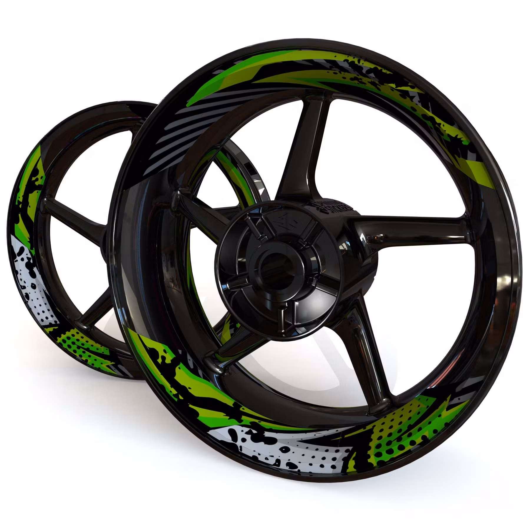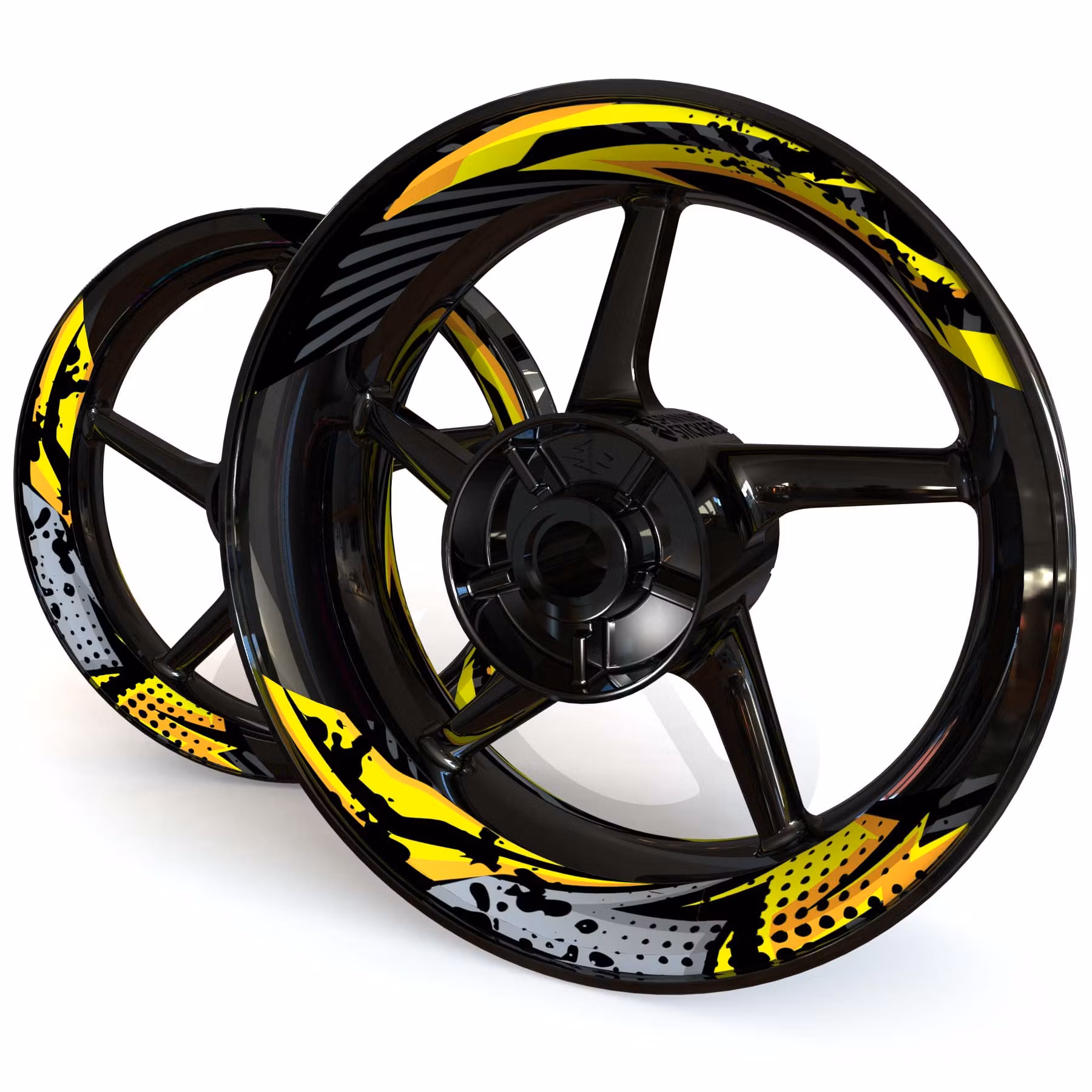 Apportez à votre moto un look de rasoir grâce au kit d'autocollants de jantes 2 pièces. Les autocollants pour vélo sont réalisés en vinyle de qualité supérieure et rehausseront le look en l'espace de quelques minutes ! La protection supplémentaire de la couche laminée confère aux autocollants une durabilité accrue et une meilleure longévité que celle des autocollants ordinaires pour motos. L'adhésif puissant, mais à action lente, vous permet d'ajuster les autocollants plusieurs fois avant qu'ils n'atteignent leur pleine adhésion.