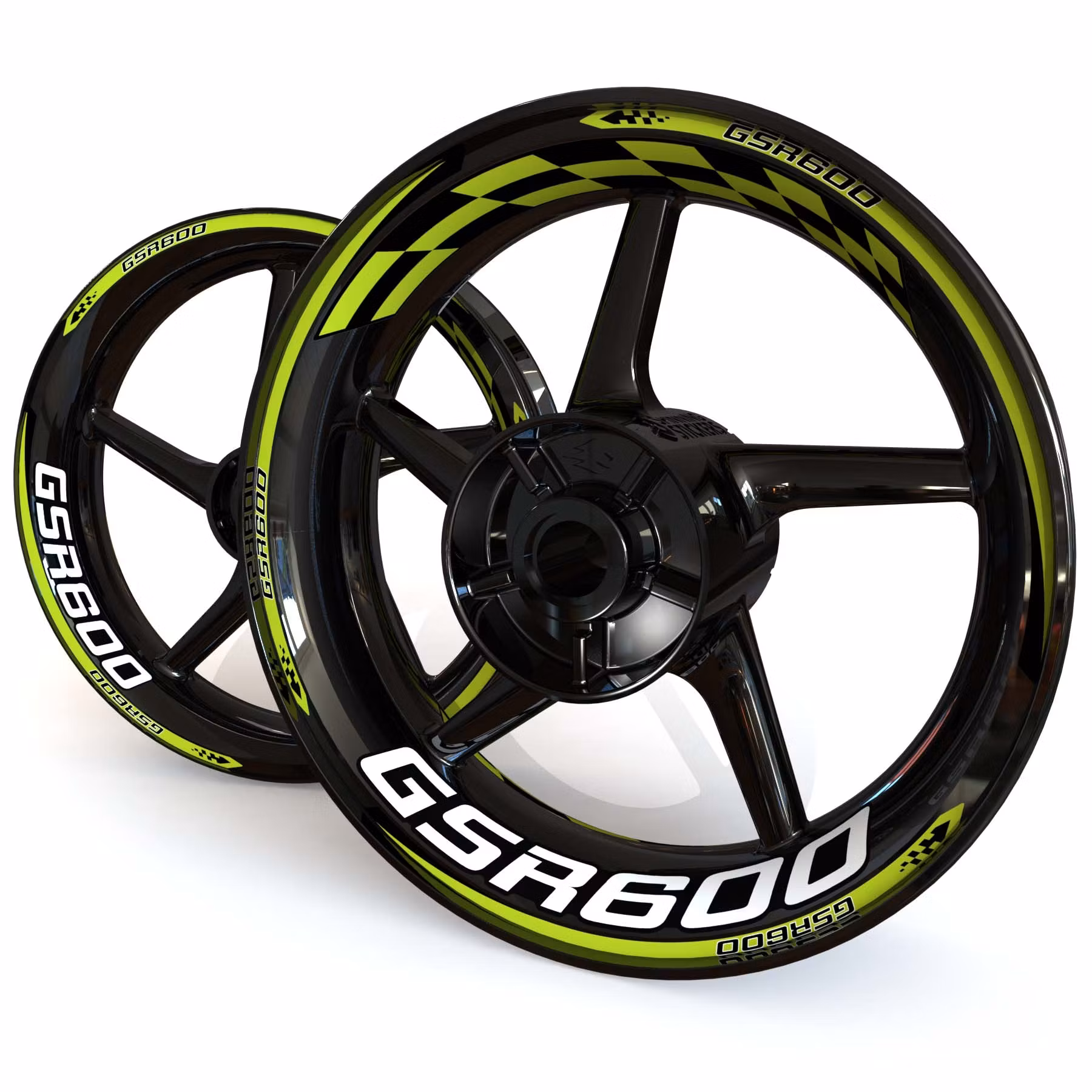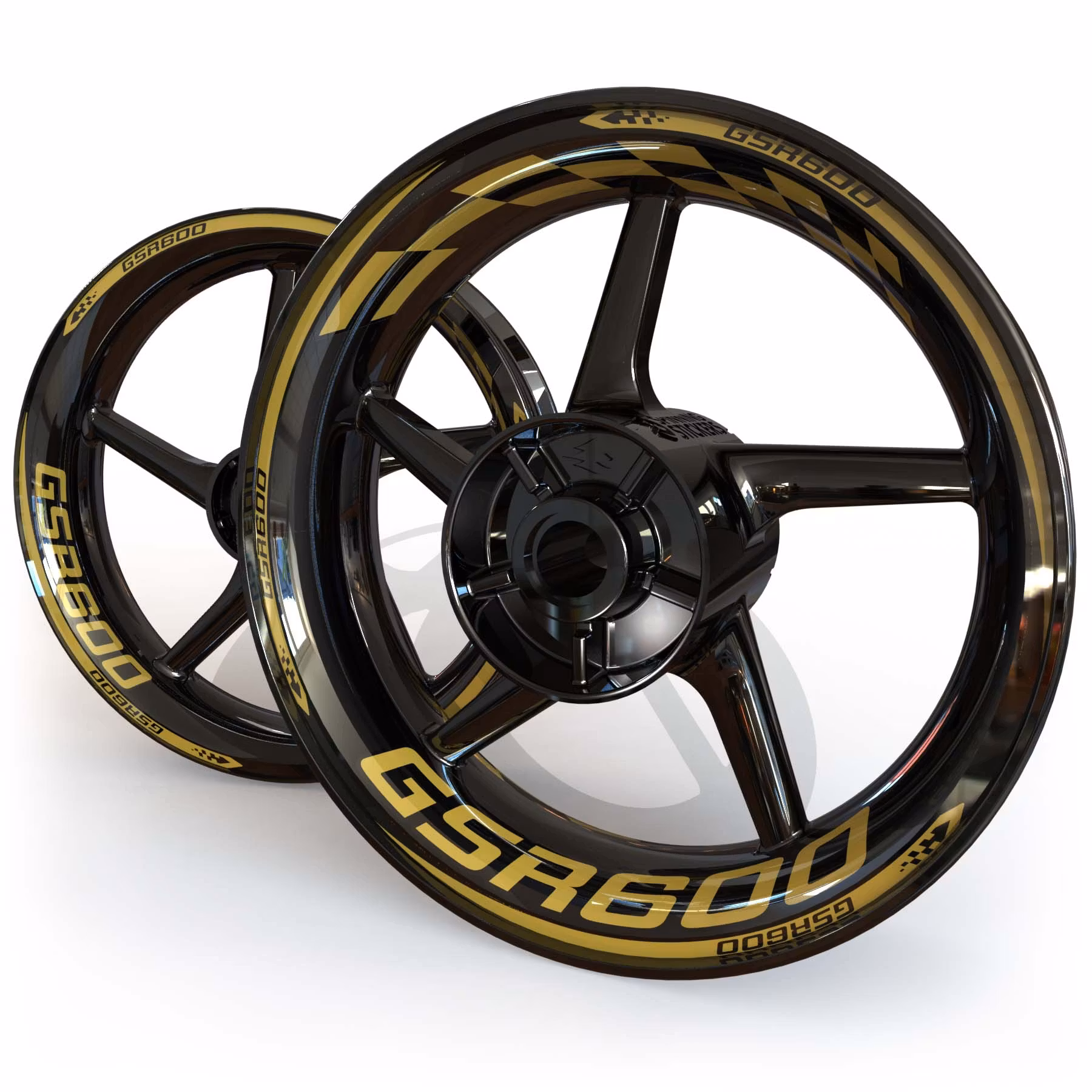 Suzuki GSR600 17" Stickers jantes. 100% complet incluant les roues avant et arrière, les deux côtés de chaque roue.