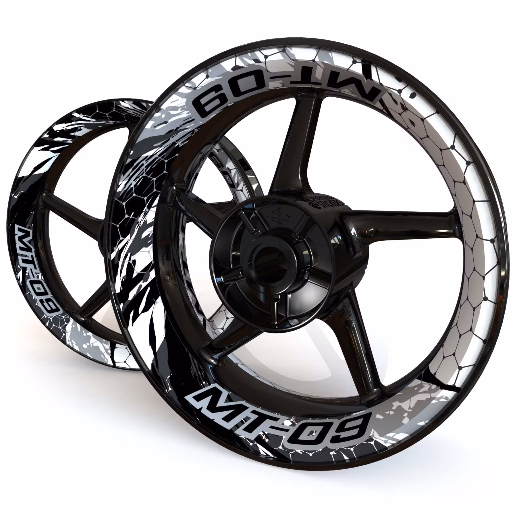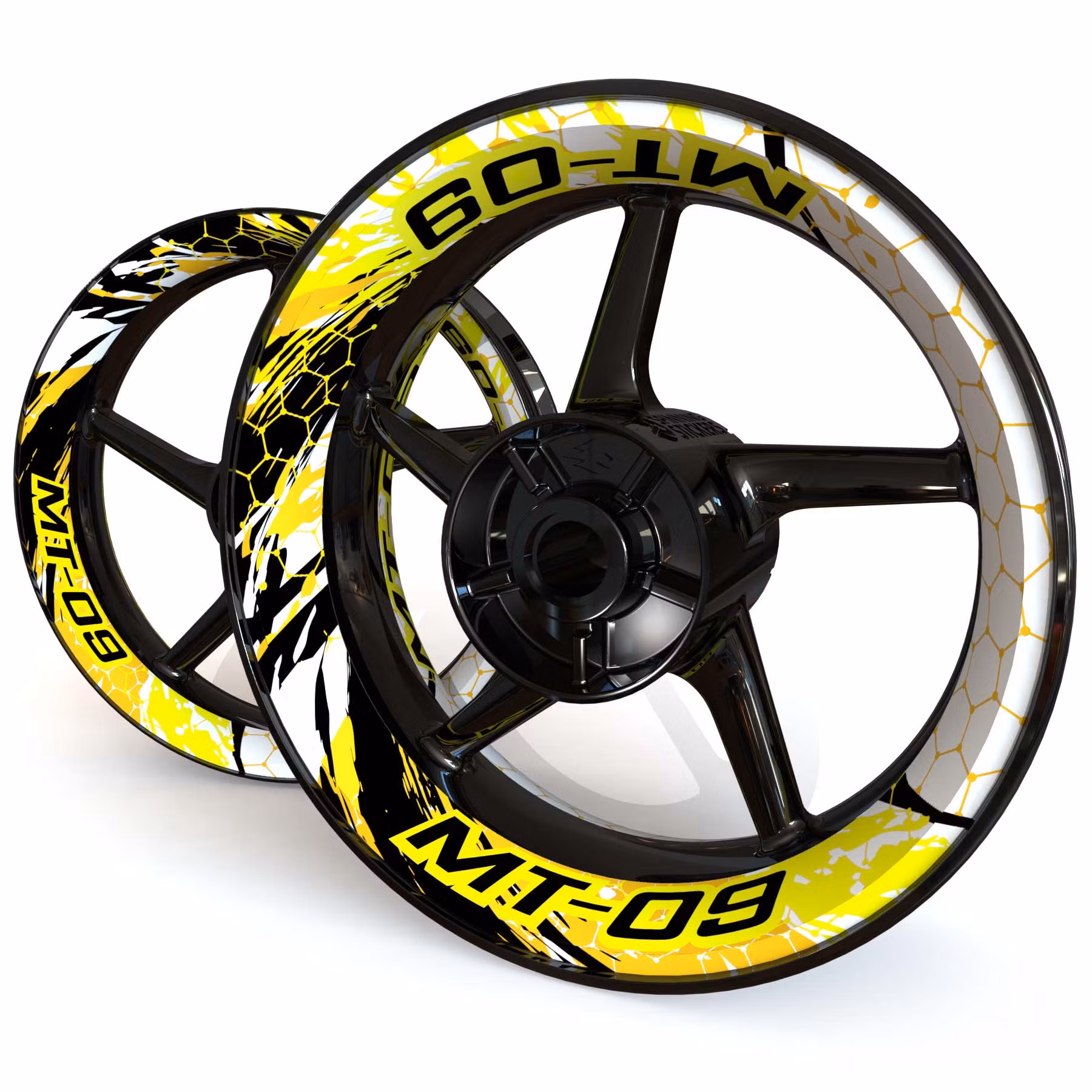 Yamaha MT-09 Autocollants pour jantes 17". 100% complet comprenant les roues avant et arrière, les deux côtés de chaque roue.
