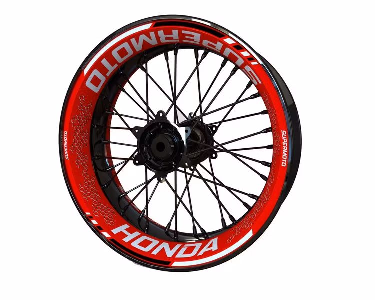 Honda CRF Supermoto rim sticker set. 100% Complete including front & rear wheel, both sides of each wheel.