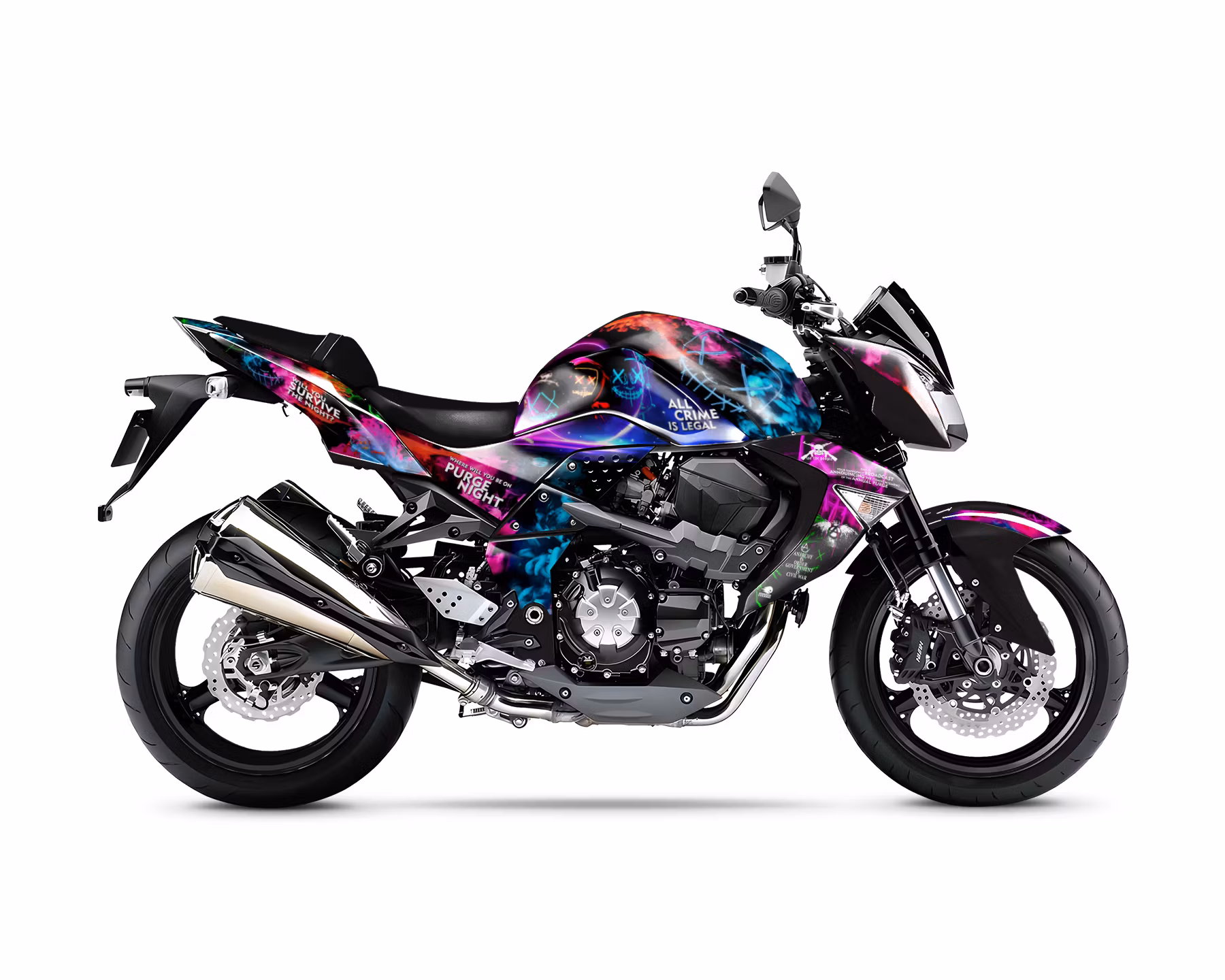 Completely transform your Kawasaki Z1000 motorcycle with our spectacular, unique and eye-catching sticker kit. The bike stickers are made of premium grade vinyl and due to the extra protective laminate layer the stickers have a fantastic durability and longevity. The adhesive is slow-acting so you can fix and re-adjust the stickers if you made an installation mistake. Full adhesion is reached after 24 hours. Fits Kawasaki Z1000.