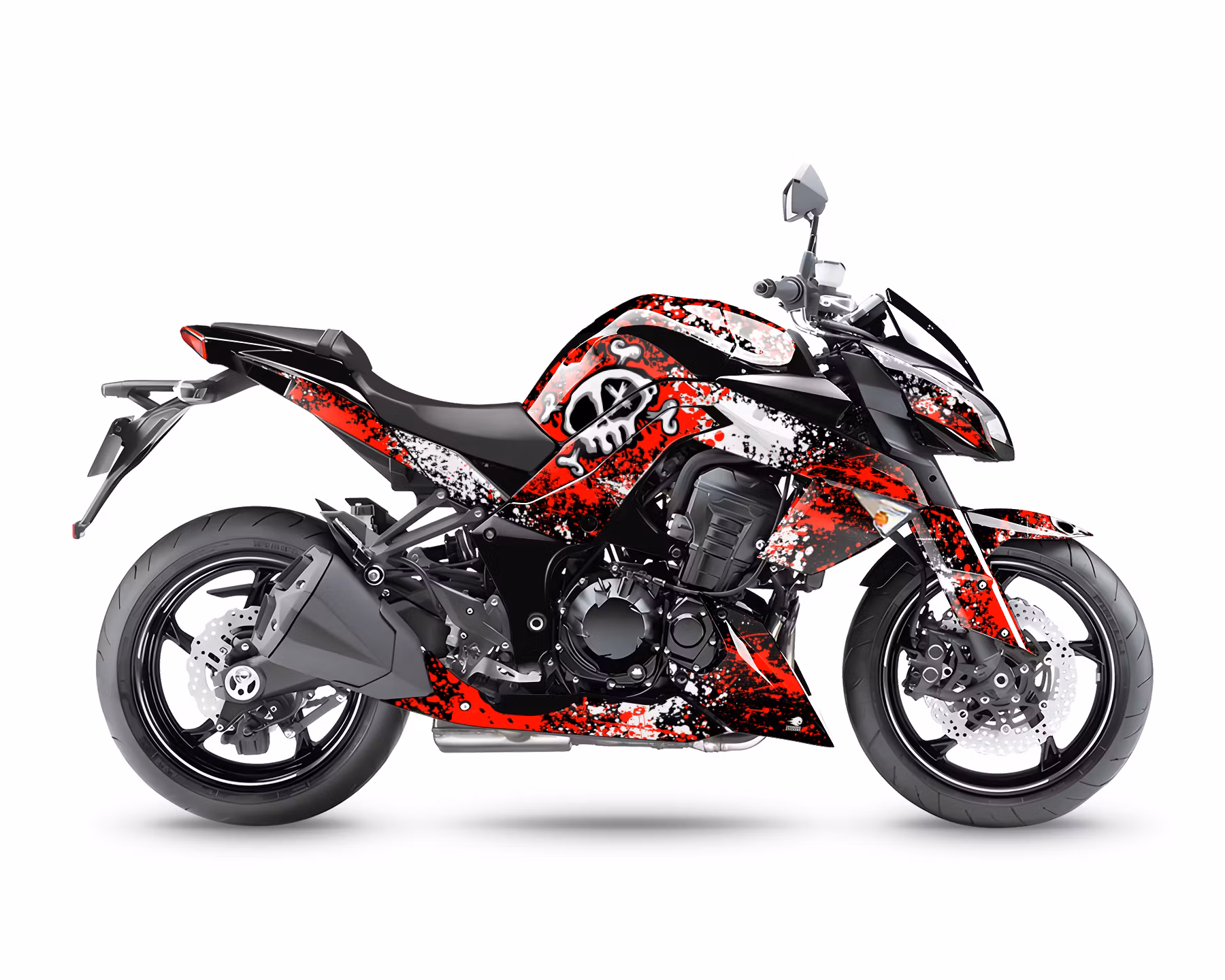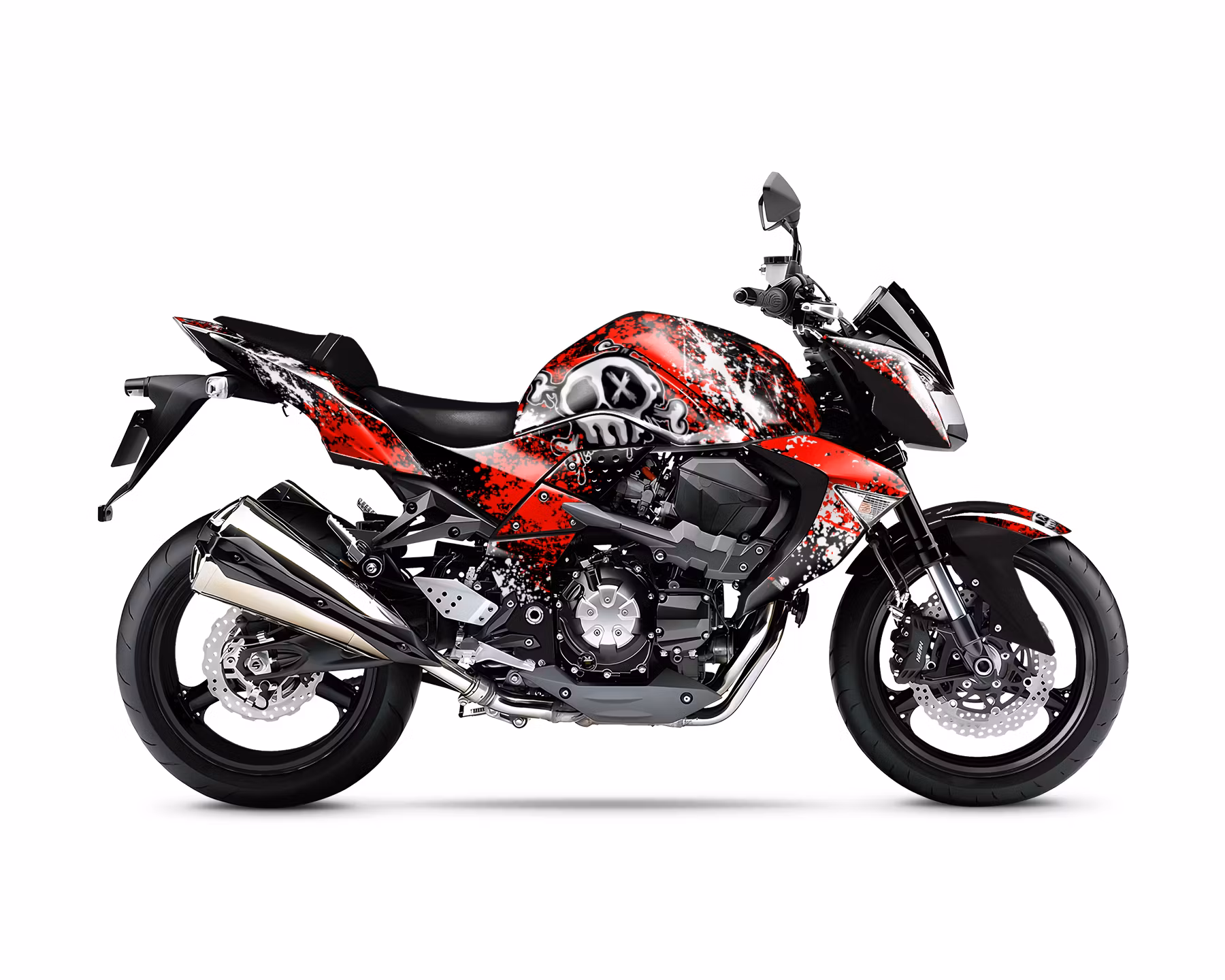 Completely transform your Kawasaki Z1000 motorcycle with our spectacular, unique and eye-catching sticker kit. The bike stickers are made of premium grade vinyl and due to the extra protective laminate layer the stickers have a fantastic durability and longevity. The adhesive is slow-acting so you can fix and re-adjust the stickers if you made an installation mistake. Full adhesion is reached after 24 hours.