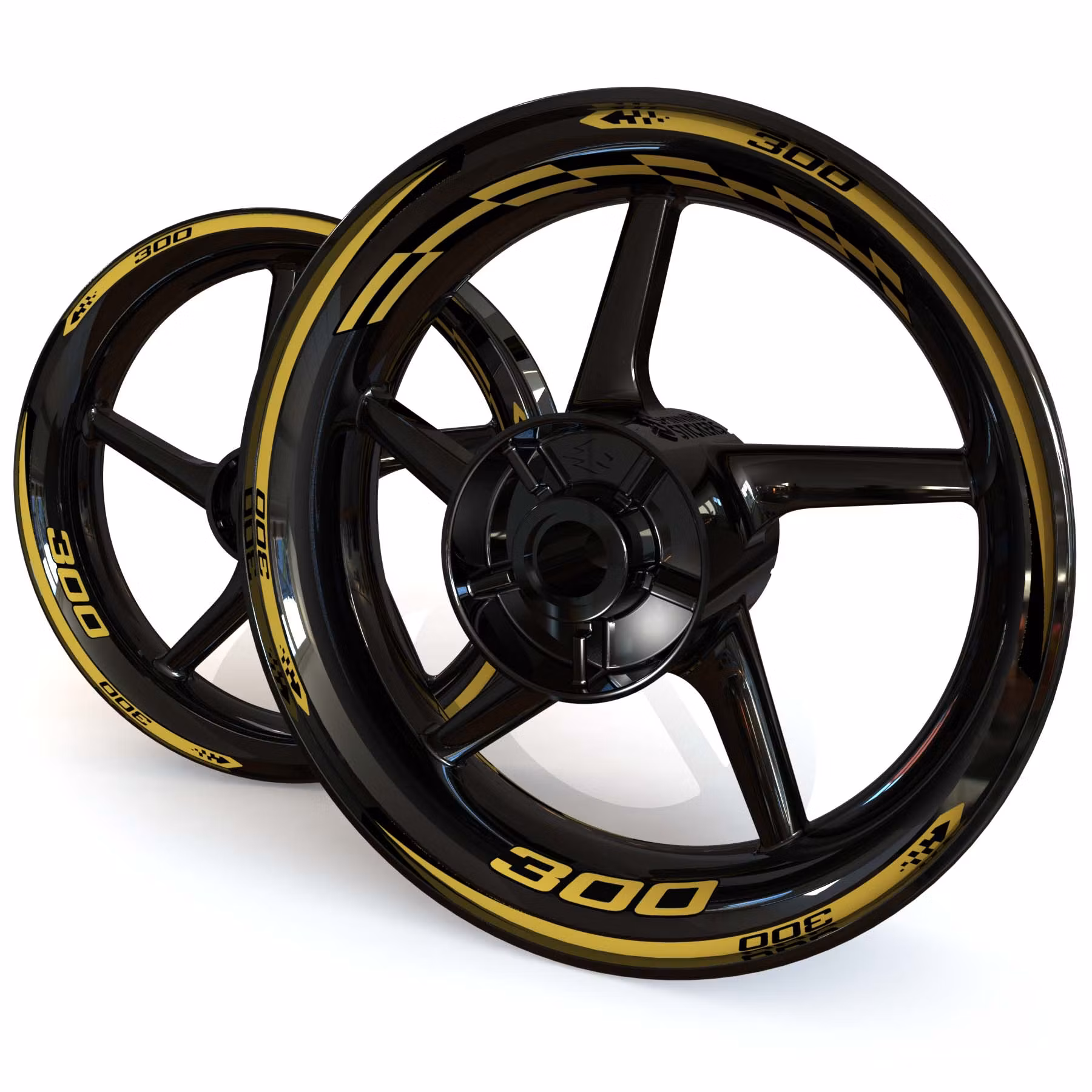 With a unique design, vibrant colors and premium material these rim stickers suitable for Kawasaki Z300 will be a perfect addition to your motorcycle. The wheel decals are laminated with a strong protective laminate for that extra durability and longevity. With a strong but slow-acting glue, you can adjust the stickers several times before it sticks and reaches full adhesion. Fits Kawasaki Z300.