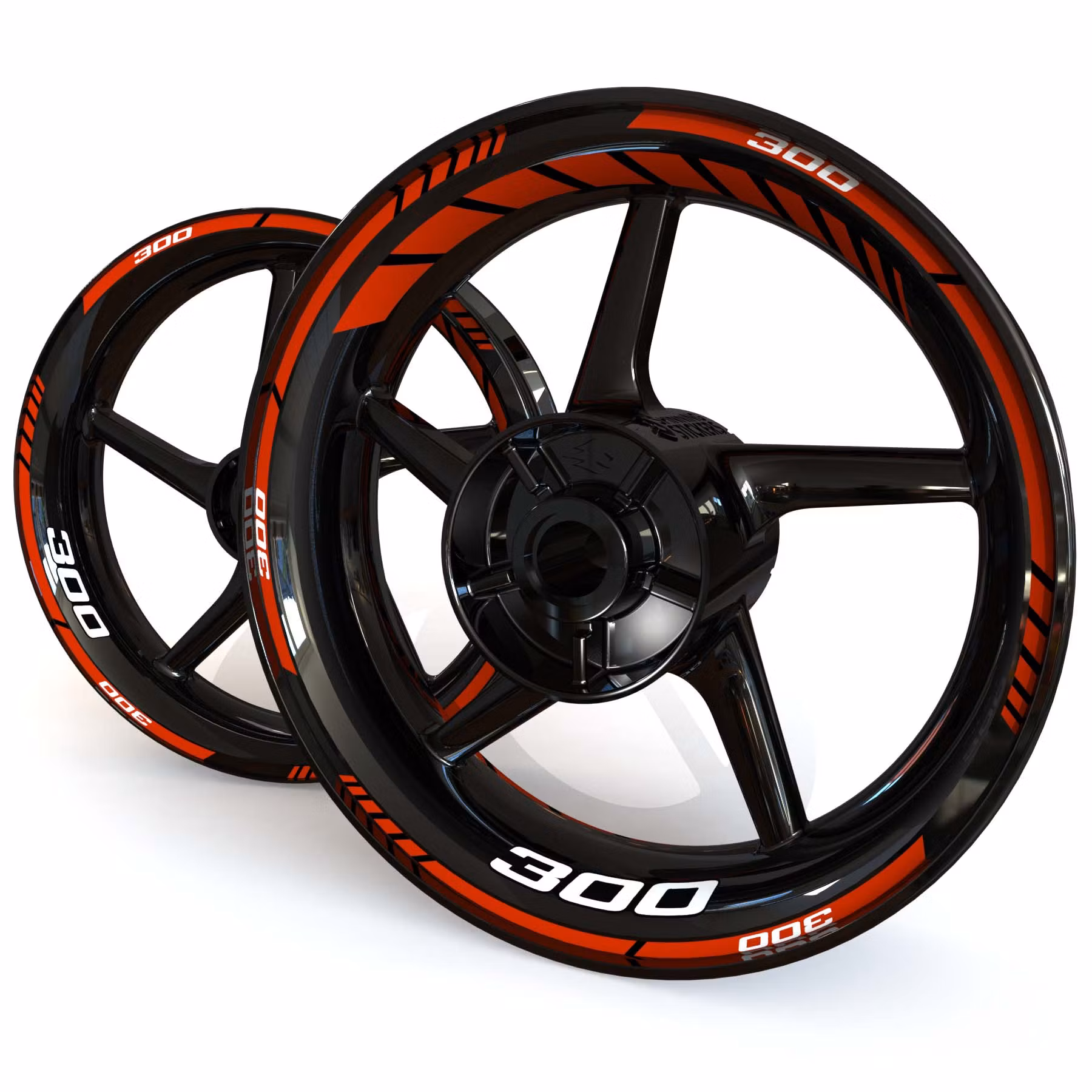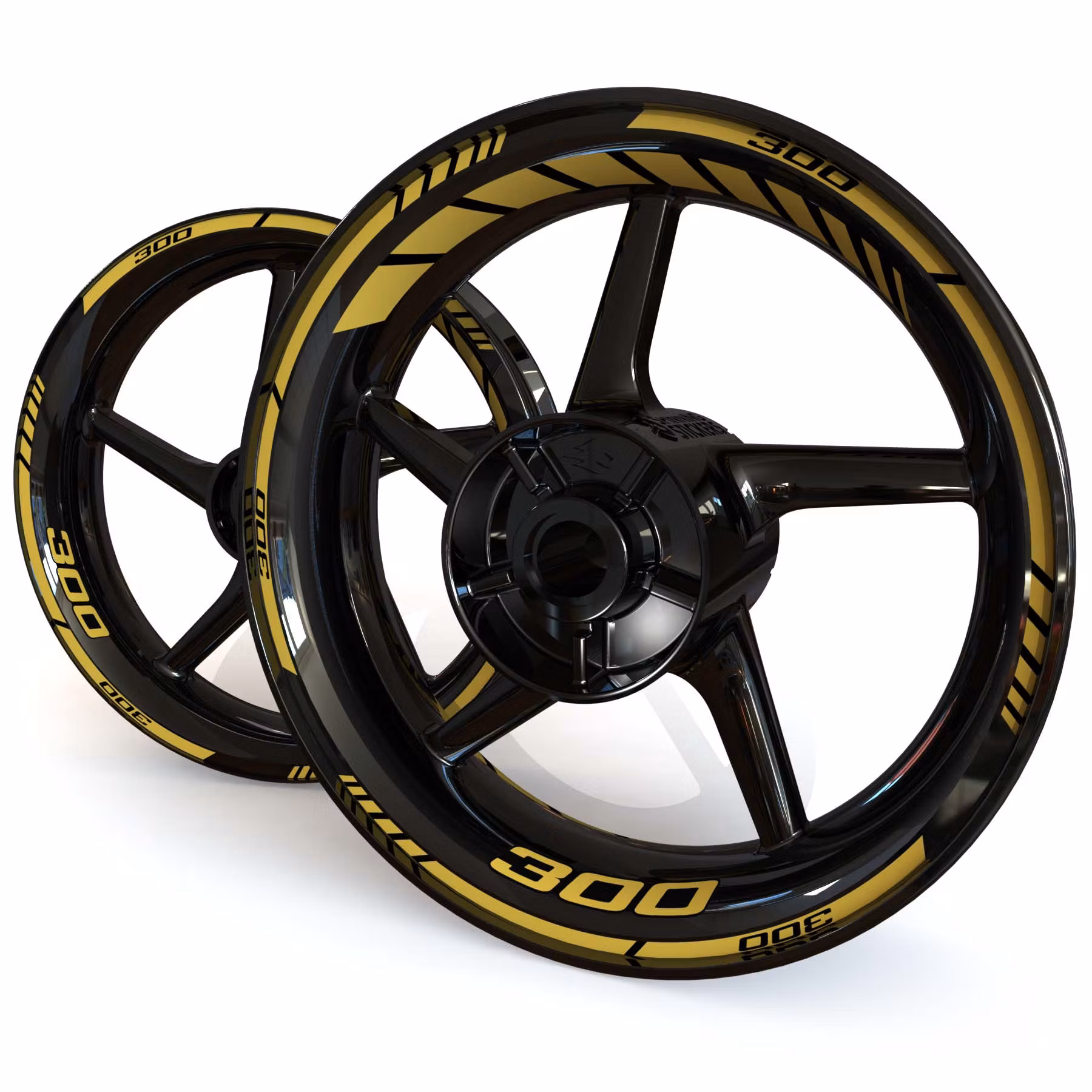 Met een uniek design, levendige kleuren en premium materiaal zijn deze velgstickers een perfecte aanvulling op je Kawasaki Z300. De 17-inch wielstickers zijn gelamineerd met een sterk beschermend laminaat voor extra duurzaamheid en een lange levensduur. Met een sterke maar langzaam werkende lijm kun je de stickers meerdere keren aanpassen voordat ze blijven plakken en volledige hechting bereiken. Geschikt voor Kawasaki Z300..