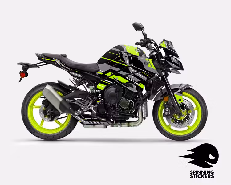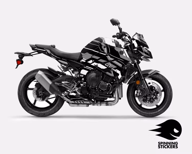Tover je Yamaha MT-10 motorfiets volledig om met onze spectaculaire, unieke en opvallende stickerset. Deze motorstickers zijn van hoogwaardig vinyl gemaakt en dankzij de extra beschermende laminaatlaag hebben de stickers een fantastische duurzaamheid en levensduur. De lijm werkt langzaam, dus je kunt de stickers loshalen en opnieuw plakken als je een foutje hebt gemaakt. Na 24 uur is de volledige hechting bereikt. Past op Yamaha MT-10.