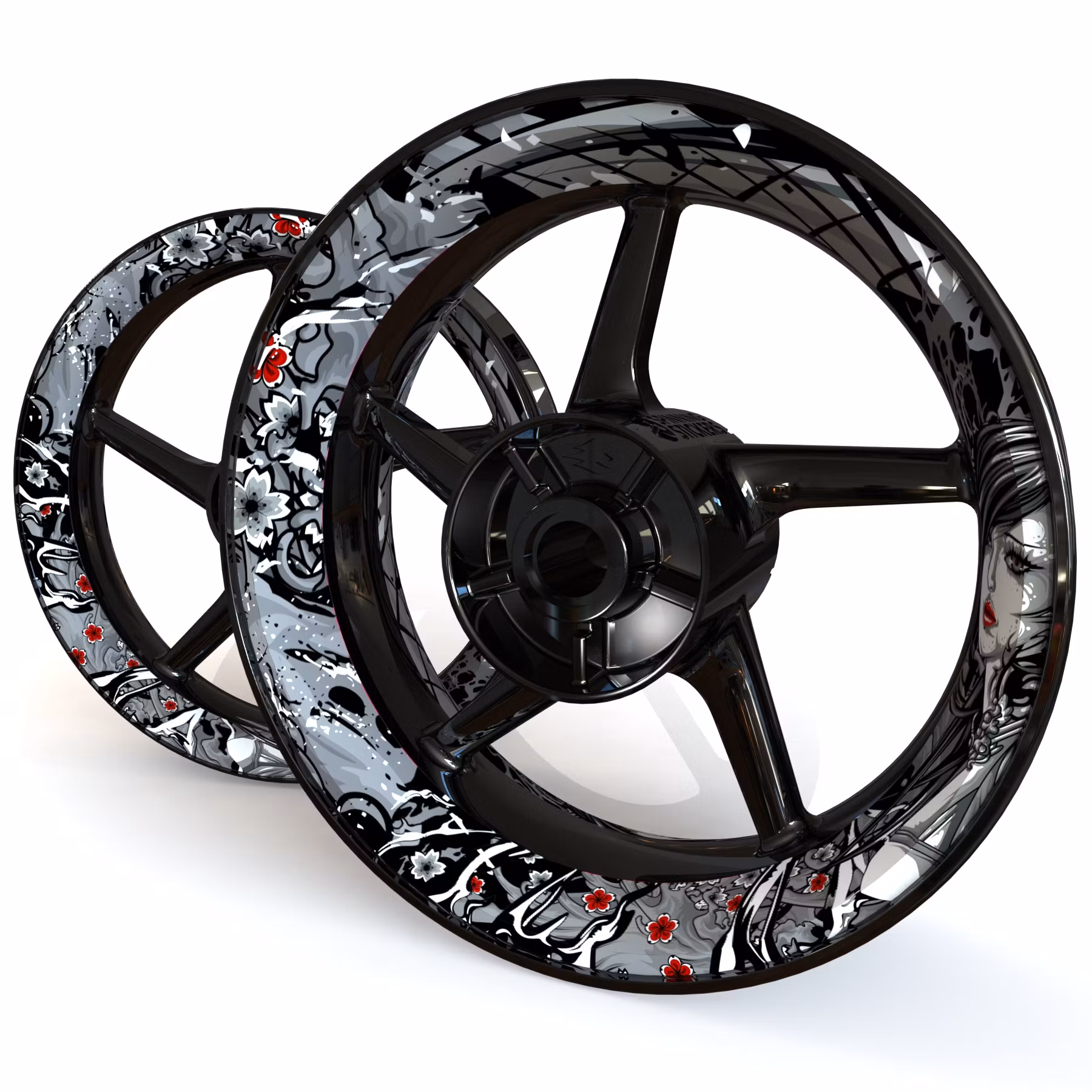 The Premium design is uniquely different from traditional wheel stickers as it completely covers the inner rim path as well as the outer rim edges, giving you a comprehensive and complete look. These Bike stickers are made of premium grade vinyl. Due to the extra protection from the laminate layer the stickers have an even better durability and longevity than common motorcycle stickers. You can adjust the stickers several times before they reach full adhesion due to the strong, but slow-acting adhesive.