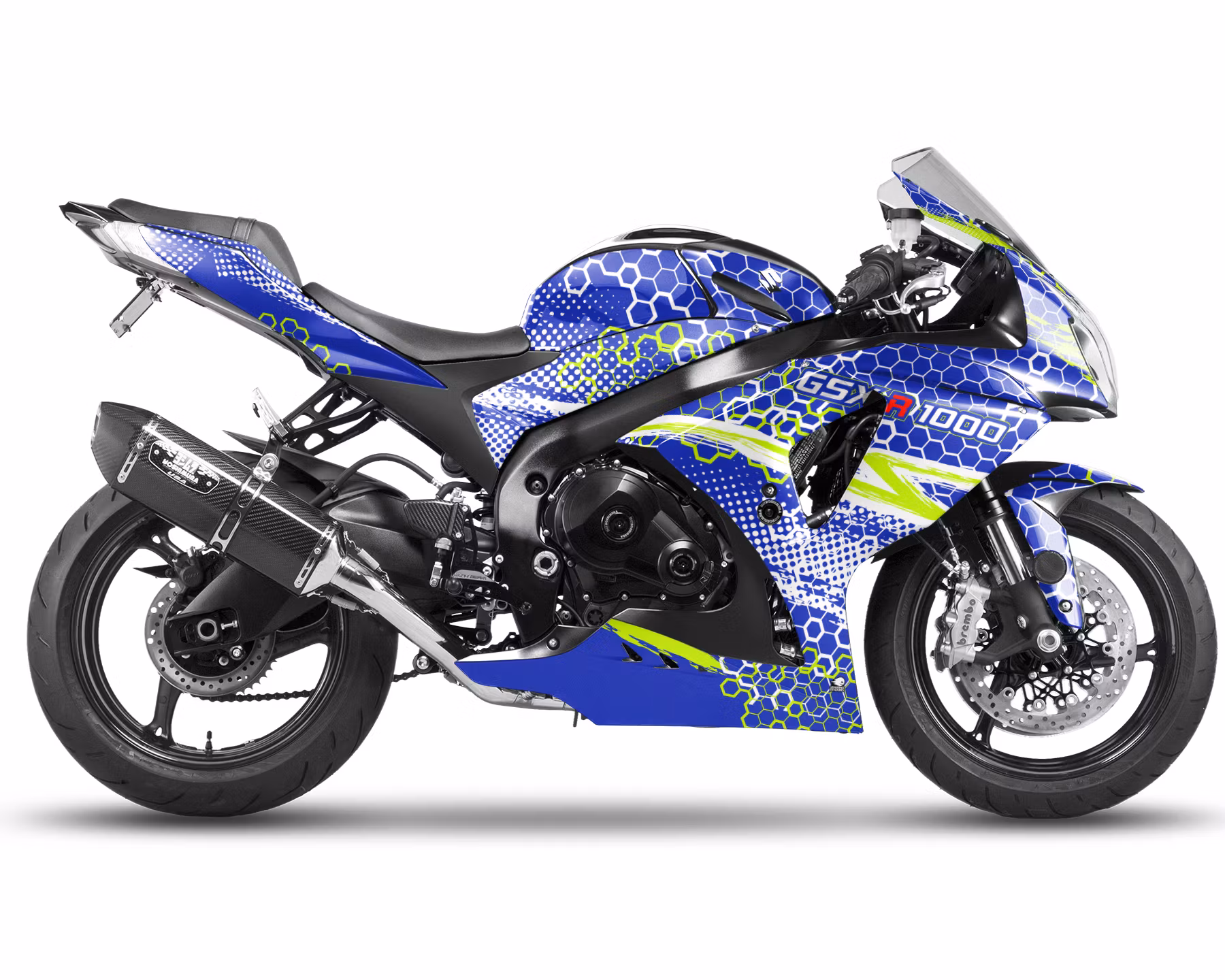 Completely transform your Suzuki GSX-R 1000 motorcycle with our spectacular, unique and eye-catching sticker kit. The bike stickers are made of premium grade vinyl and due to the extra protective laminate layer the stickers have a fantastic durability and longevity. The adhesive is slow-acting so you can fix and re-adjust the stickers if you made an installation mistake. Full adhesion is reached after 24 hours.