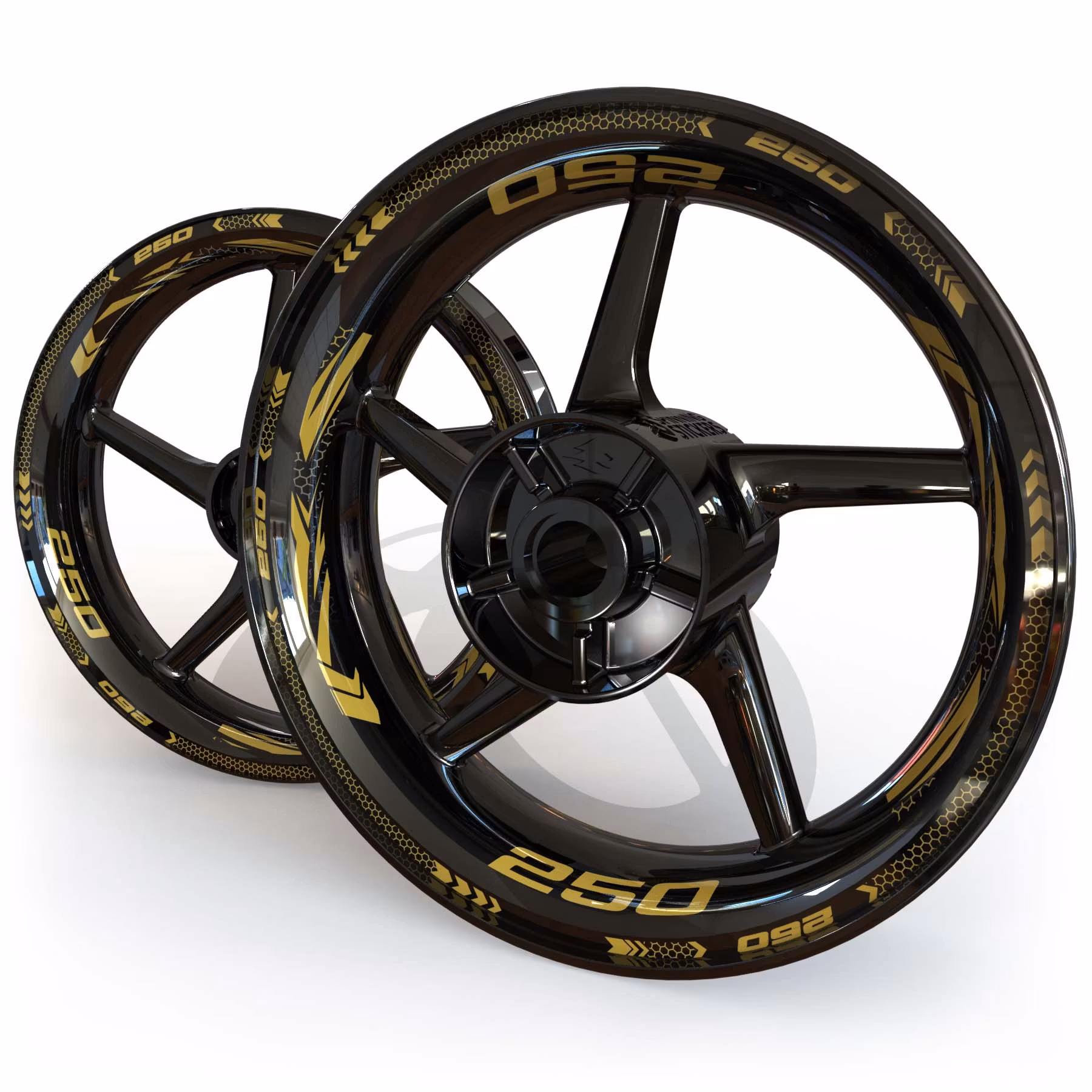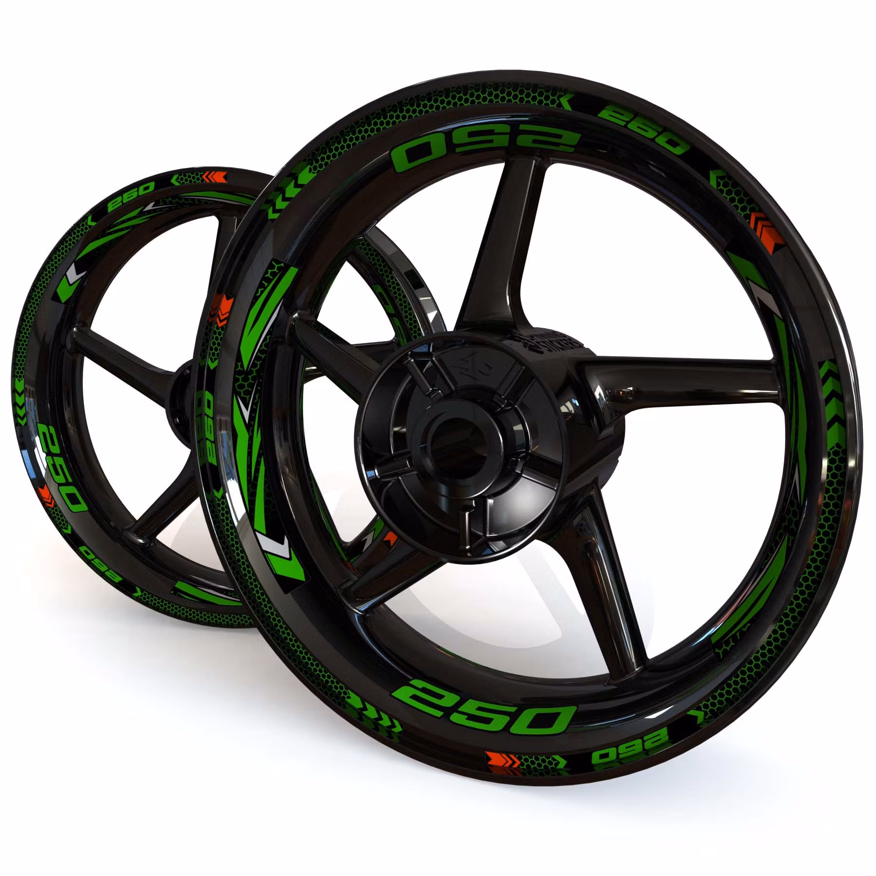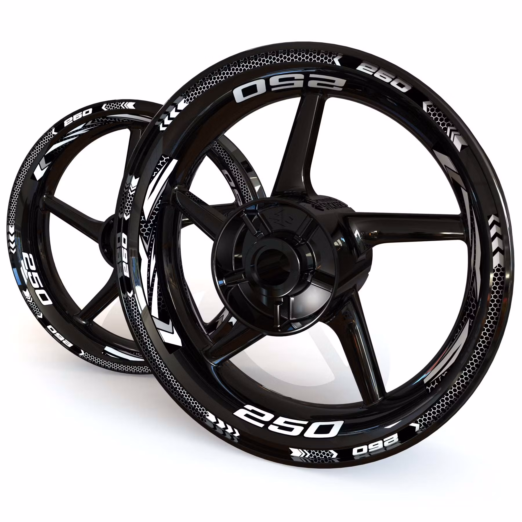 17" fälgklistermärken set. 100% komplett inklusive fram- och bakhjul, båda sidorna av varje hjul.