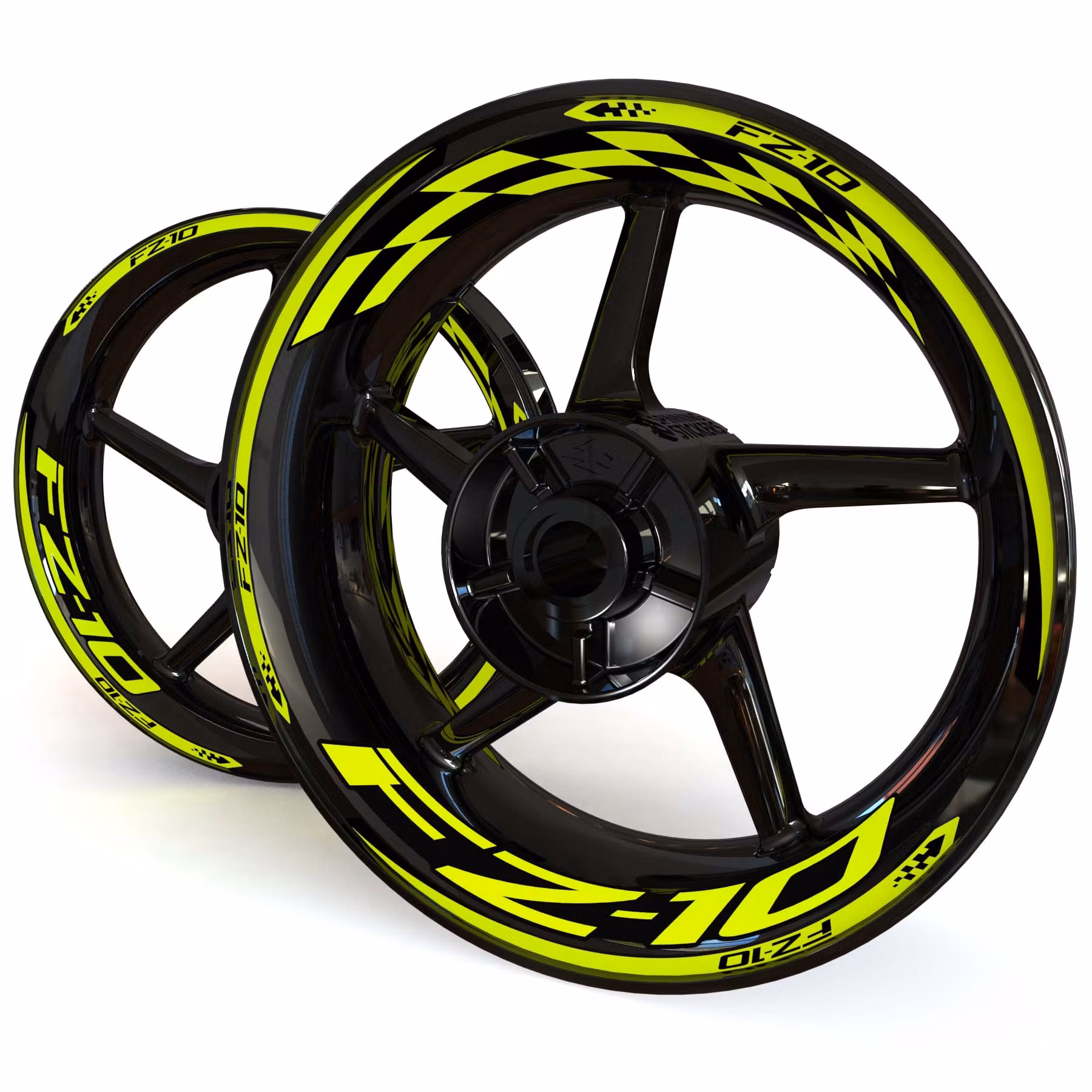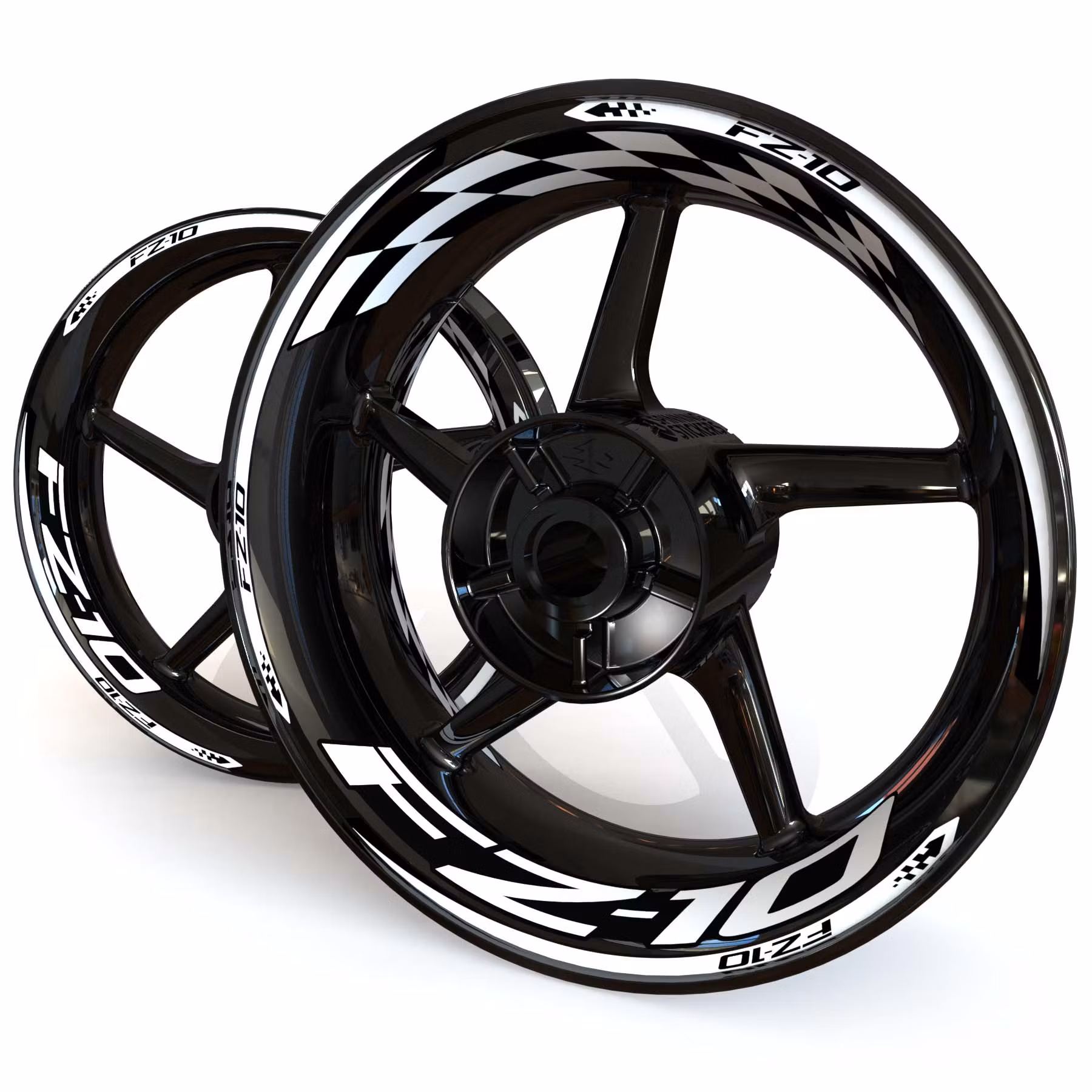 Med en unik design, livfulla färger och premium material kommer dessa Yamaha FZ10 fälgdekaler att vara ett perfekt komplement till din motorcykel. Dekalerna är laminerade med ett gediget skyddslaminat för extra hållbarhet och livslängd. Med ett starkt men långsamt verkande lim kan du justera klistermärkena flera gånger innan det fastnar och når full vidhäftning.