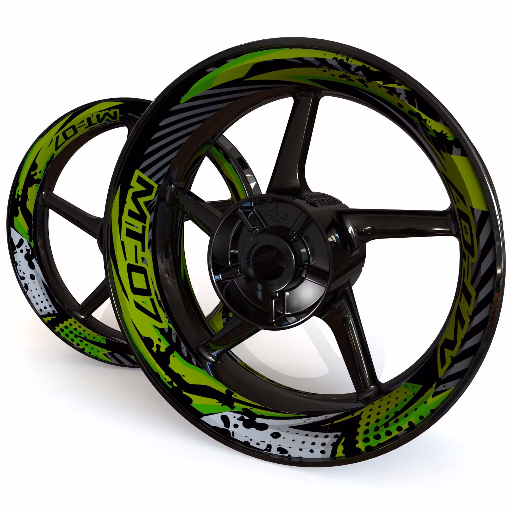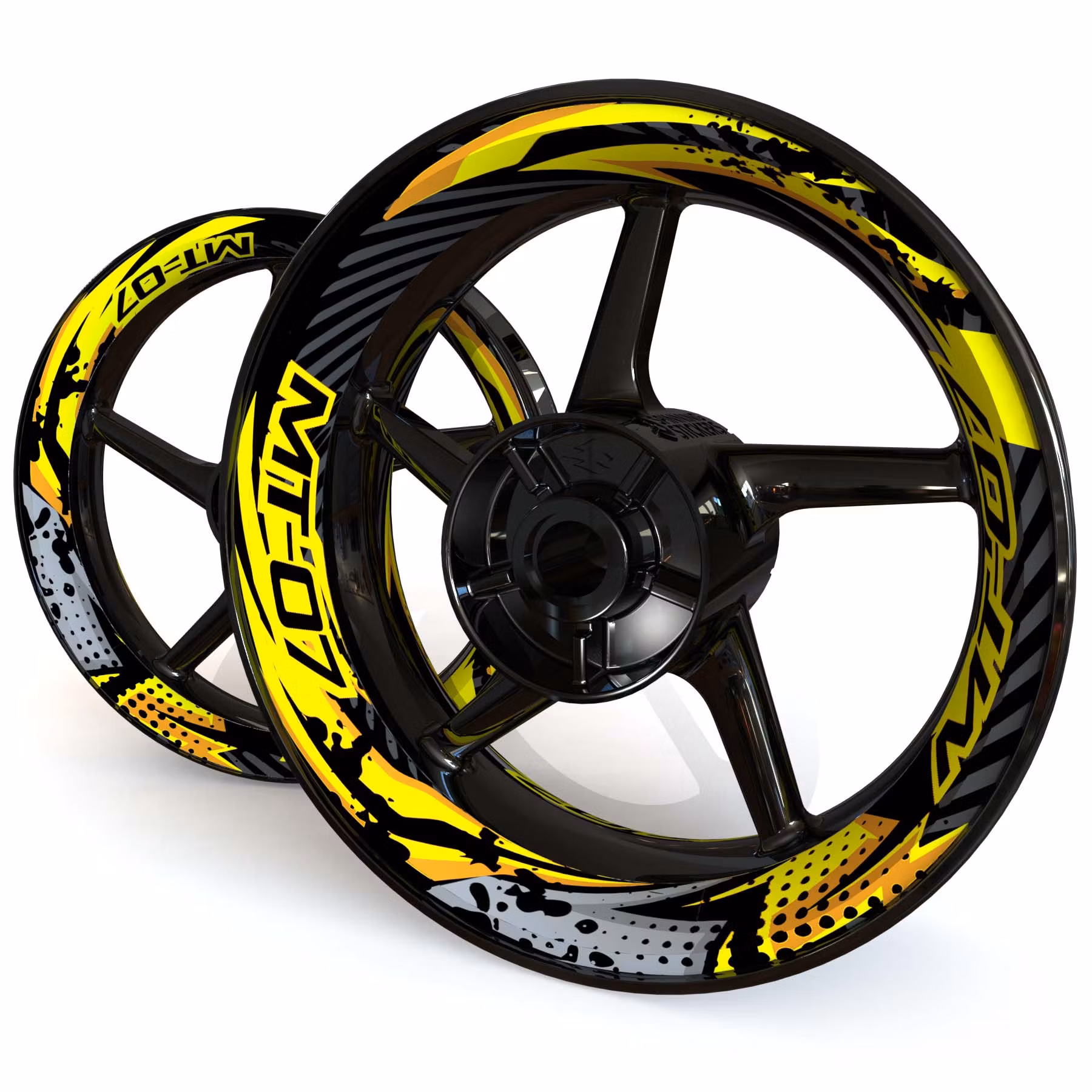 Fälgdekaler i premiumdesign som skiljer sig från traditionella fälgdekaler då dom täcker hela fälgbanan samt fälgkanten. Dekalerna för din Yamaha MT07 är gjorda av premiumvinyl med lång hållbarhet tack vare skyddande laminat. Dekalerna kan vid montering flyttas flera gånger innan det långsamt-verkande limmet härdar.