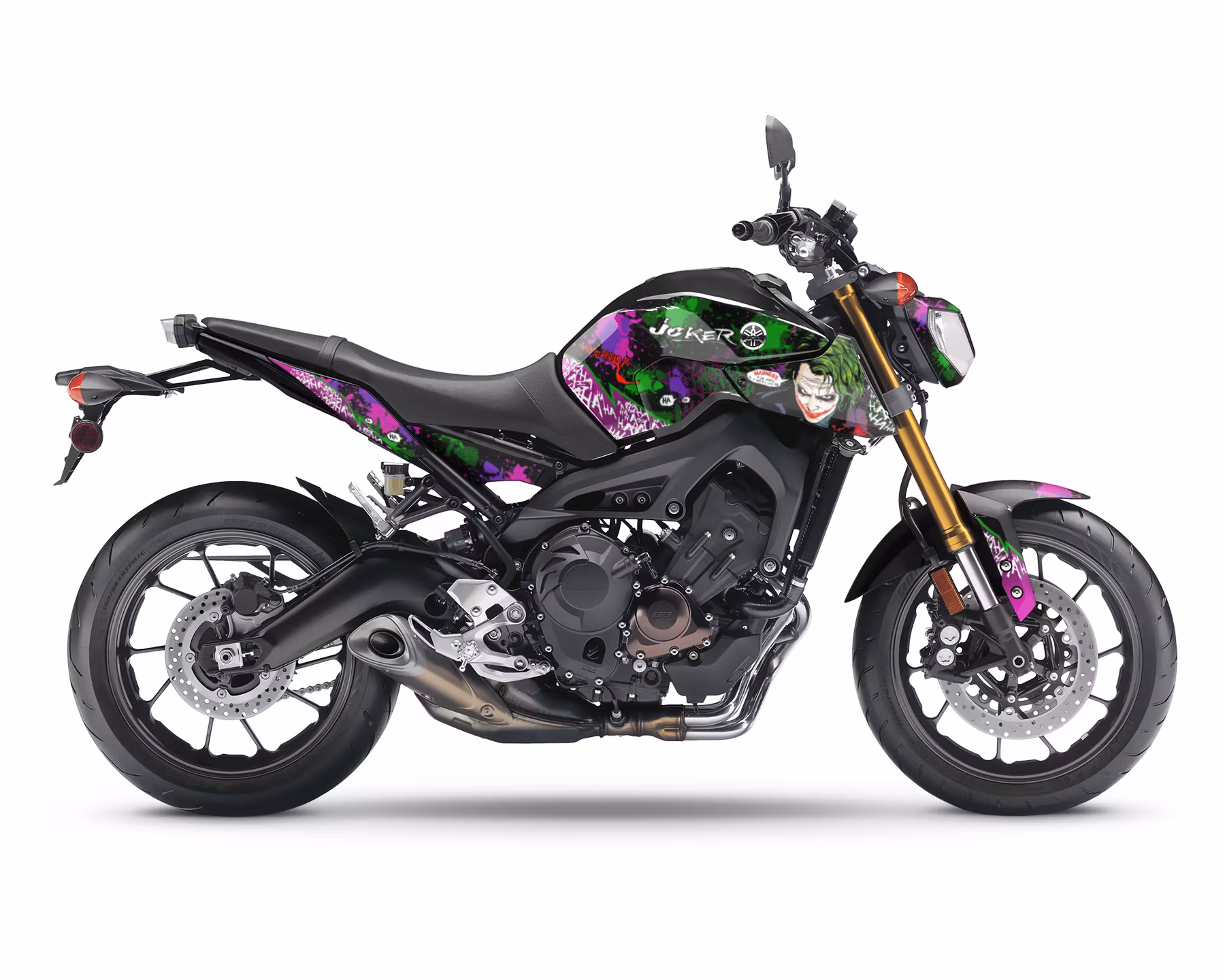 Completely transform your Yamaha MT-09 motorcycle with our spectacular, unique and eye-catching sticker kit. The bike stickers are made of premium grade vinyl and due to the extra protective laminate layer the stickers have a fantastic durability and longevity. The adhesive is slow-acting so you can fix and re-adjust the stickers if you made an installation mistake. Full adhesion is reached after 24 hours.