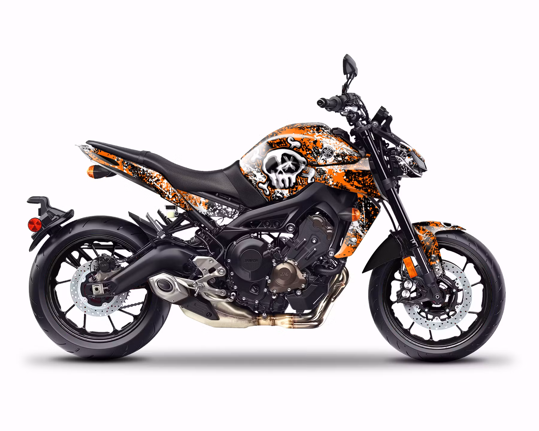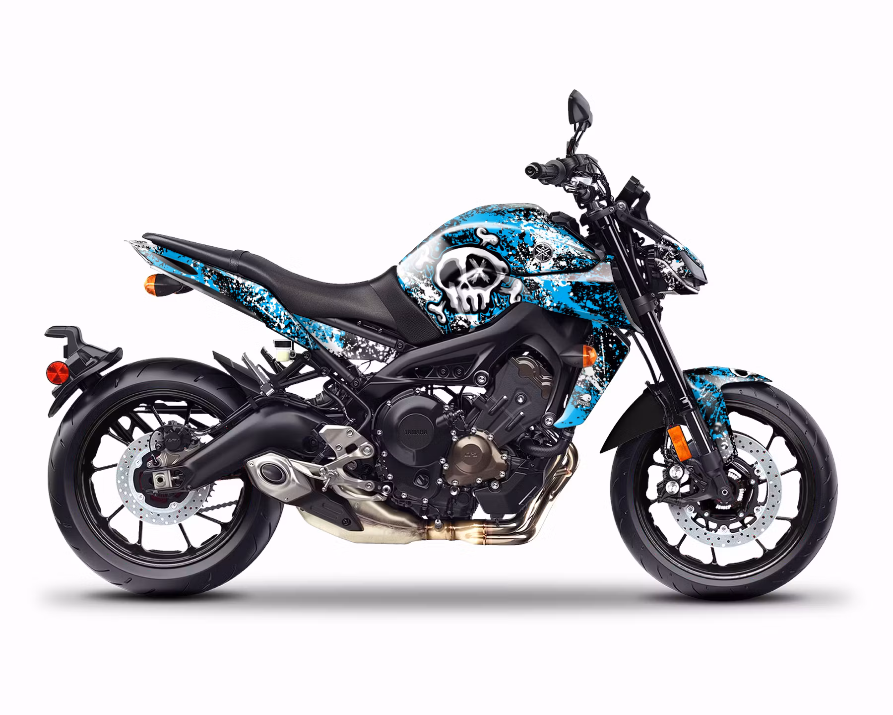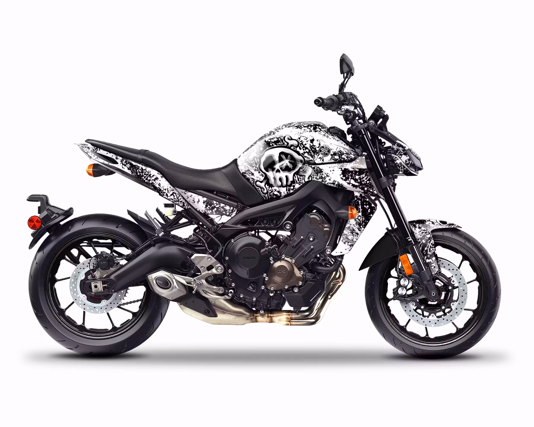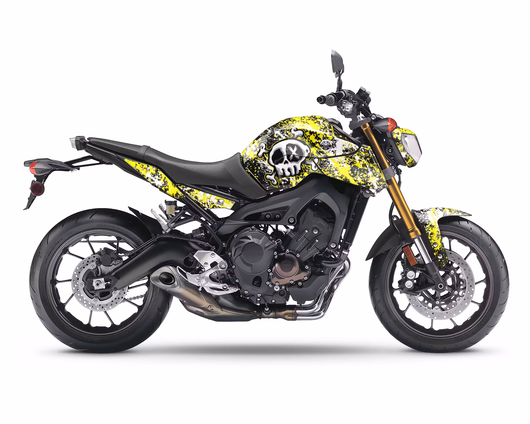 Completely transform your Yamaha MT09 motorcycle with our spectacular, unique and eye-catching sticker kit. The bike stickers are made of premium grade vinyl and due to the extra protective laminate layer the stickers have a fantastic durability and longevity. The adhesive is slow-acting so you can fix and re-adjust the stickers if you made an installation mistake. Full adhesion is reached after 24 hours.