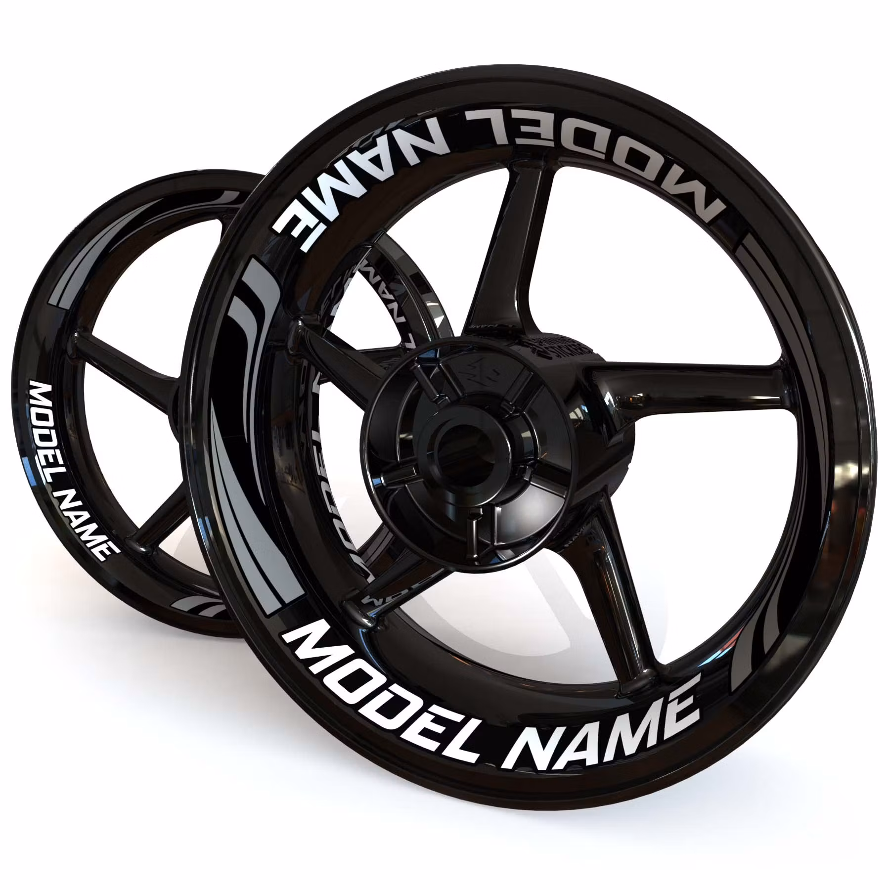 Your Text 17" Wheel stickers set. 100% Complete including front & rear wheel, both sides of each wheel.