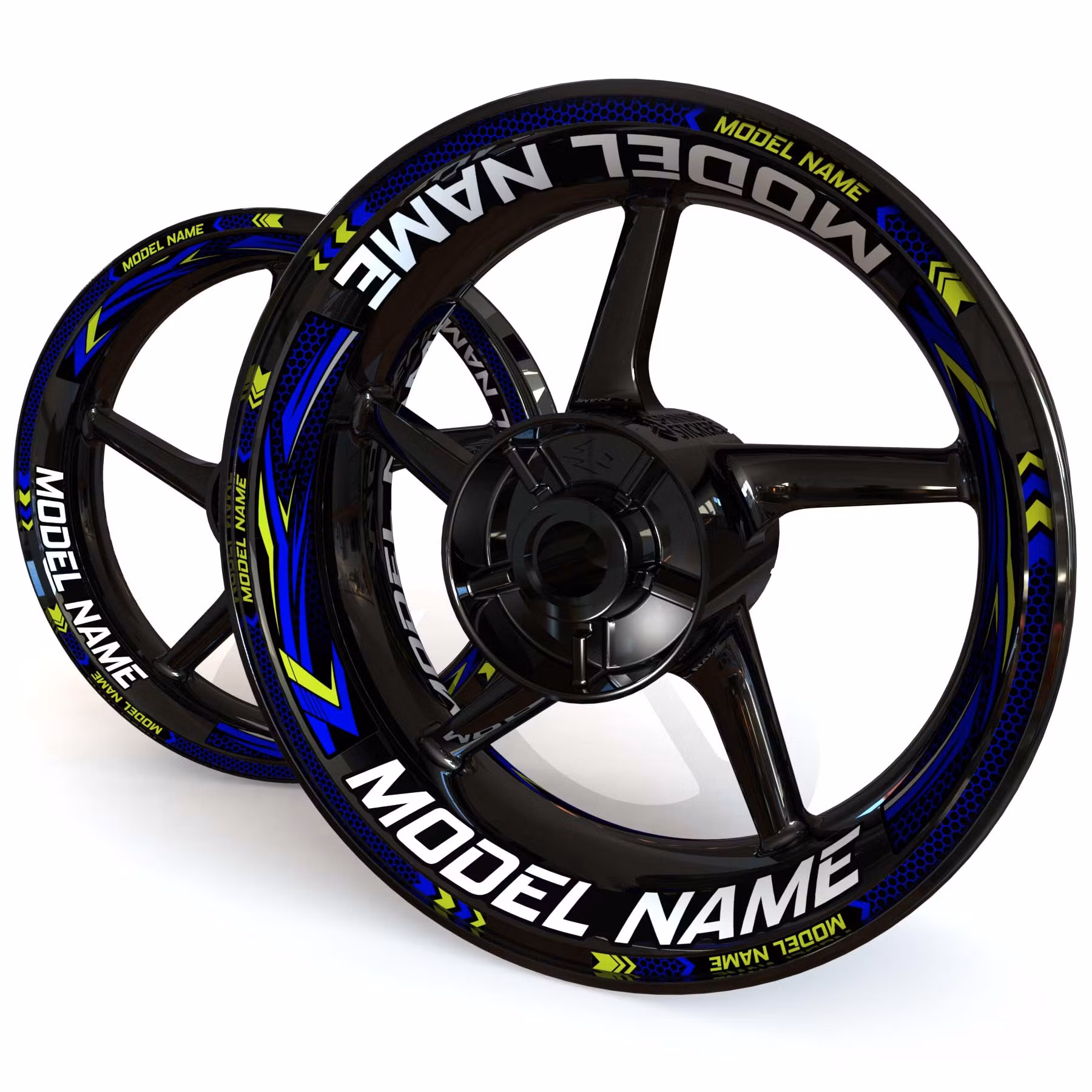 Your Text 17" Wheel stickers set. 100% Complete including front & rear wheel, both sides of each wheel.