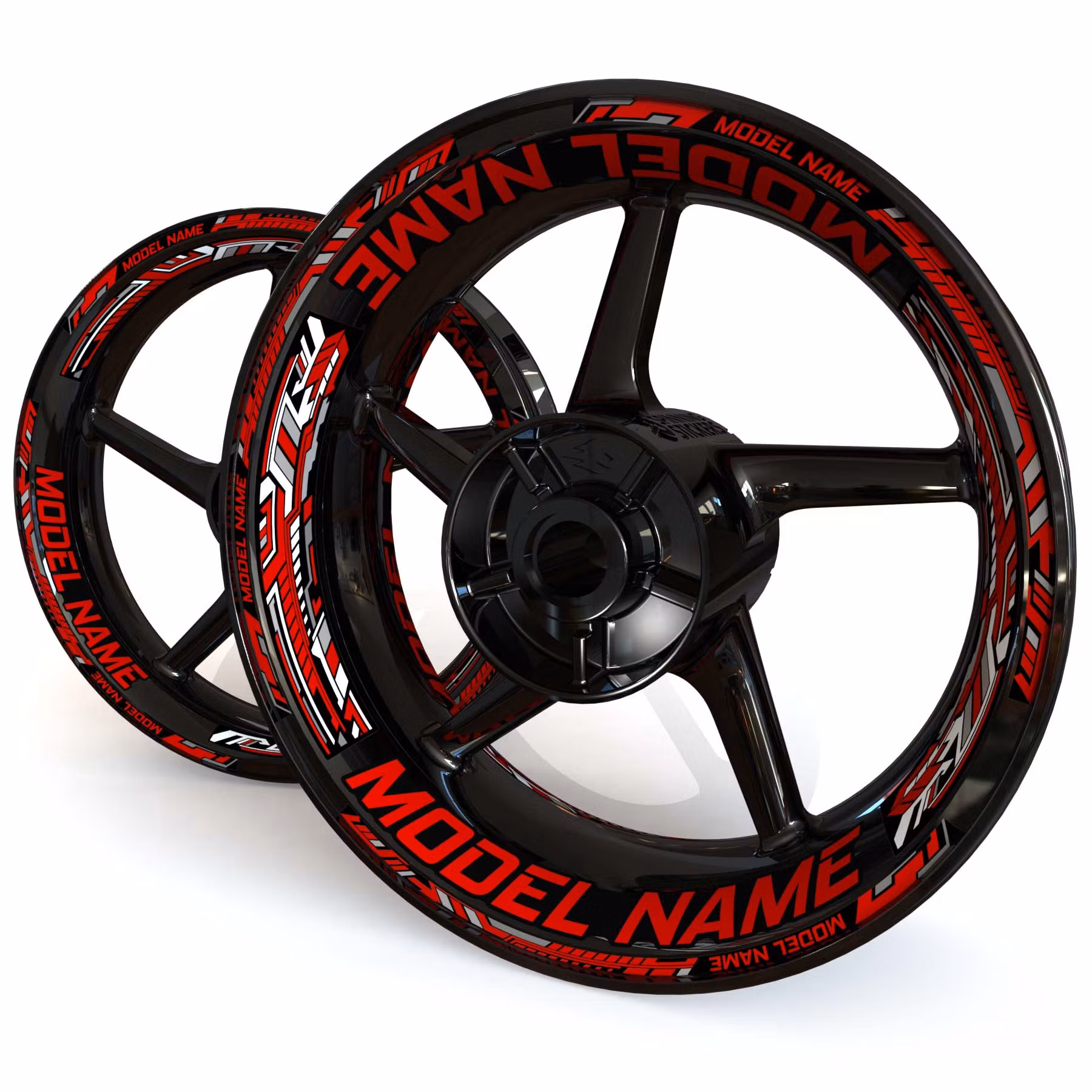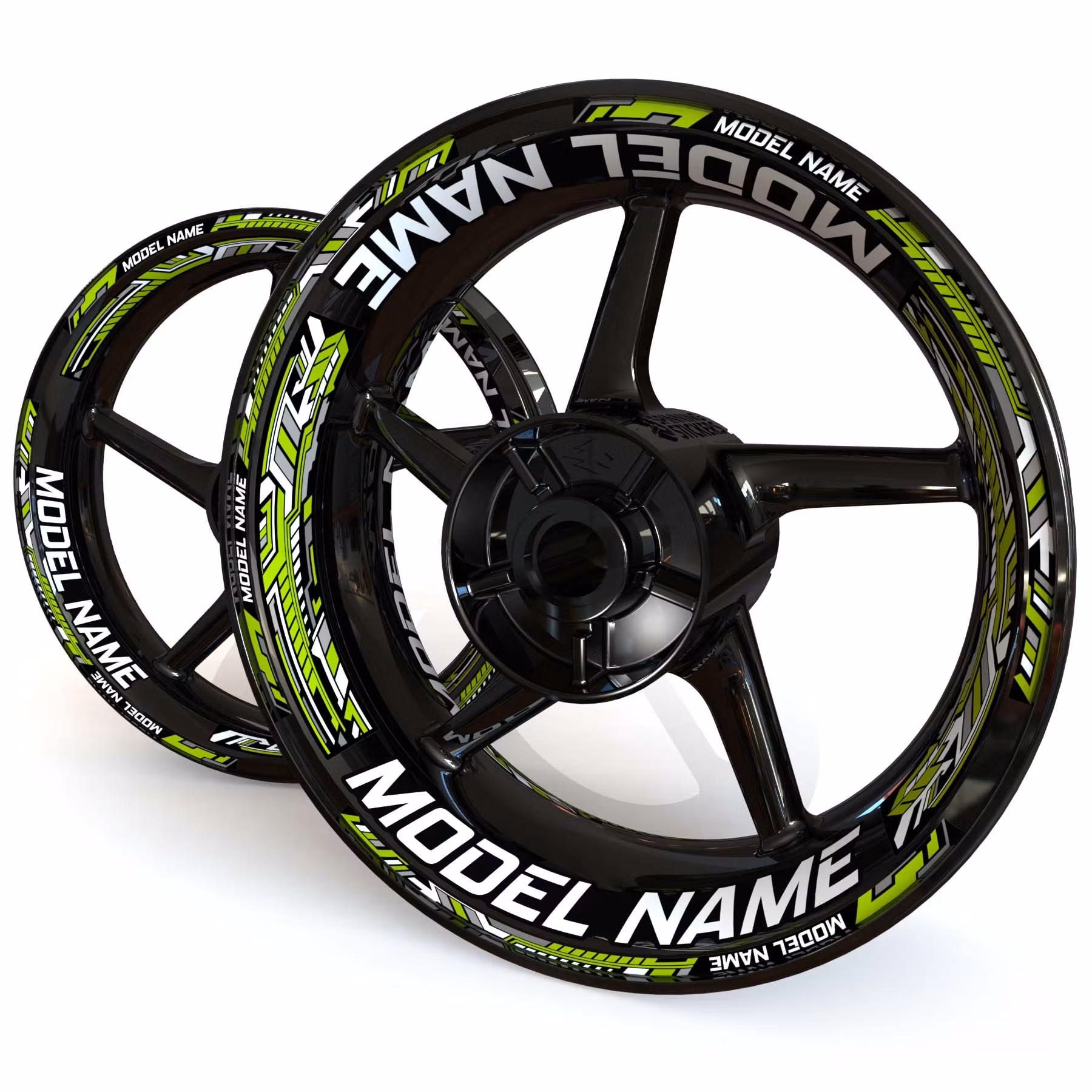 Your Text 17" Wheel stickers set. 100% Complete including front & rear wheel, both sides of each wheel.