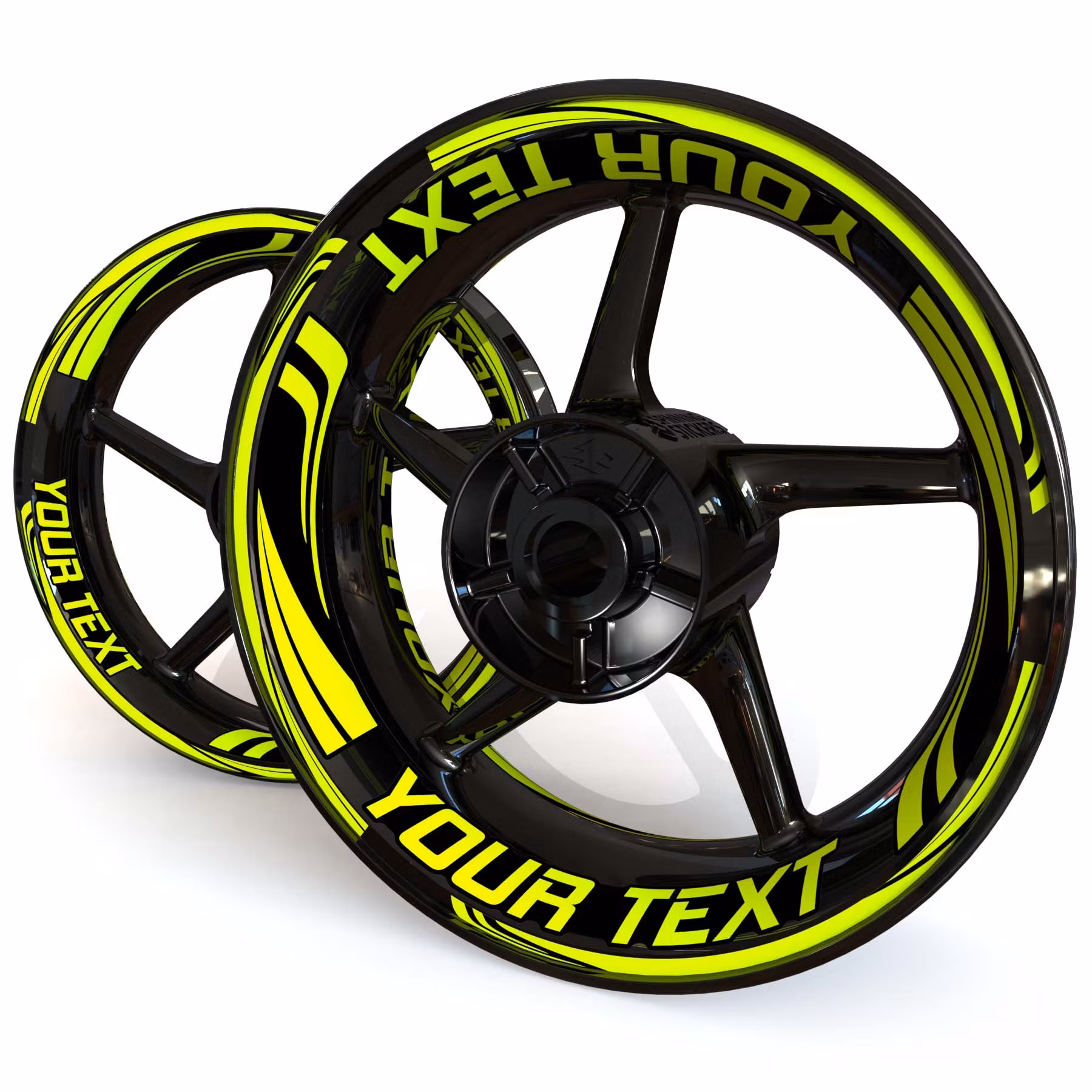 Your Text 17" Wheel stickers set. 100% Complete including front & rear wheel, both sides of each wheel.